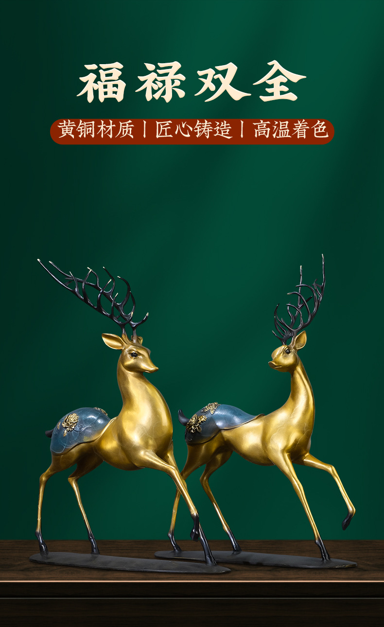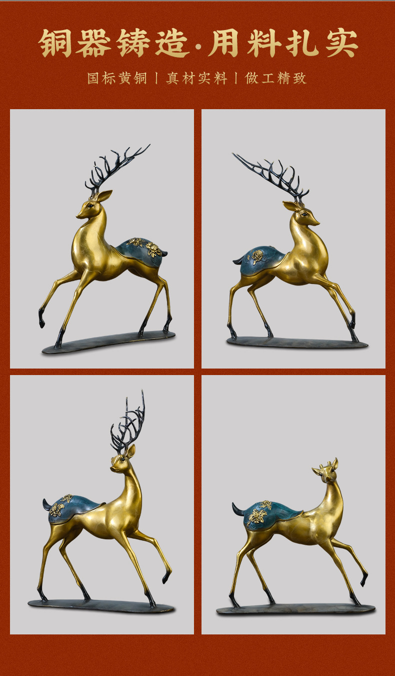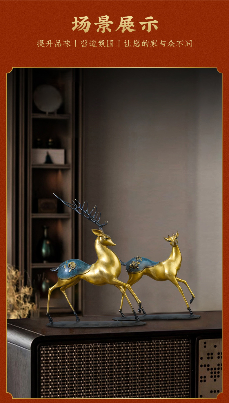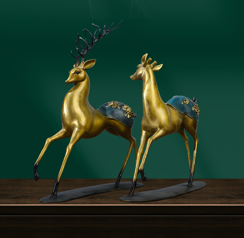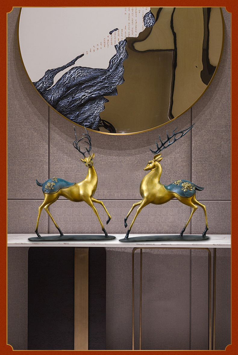 Đồng Vàng Năm Đồng Hươu Trang Trí Thủ Công Mới Phong Cách Trung Hoa Lối Vào Tủ Tivi Phòng Khách Trang Trí Nhà Cửa Tân Gia Quà Tặng
