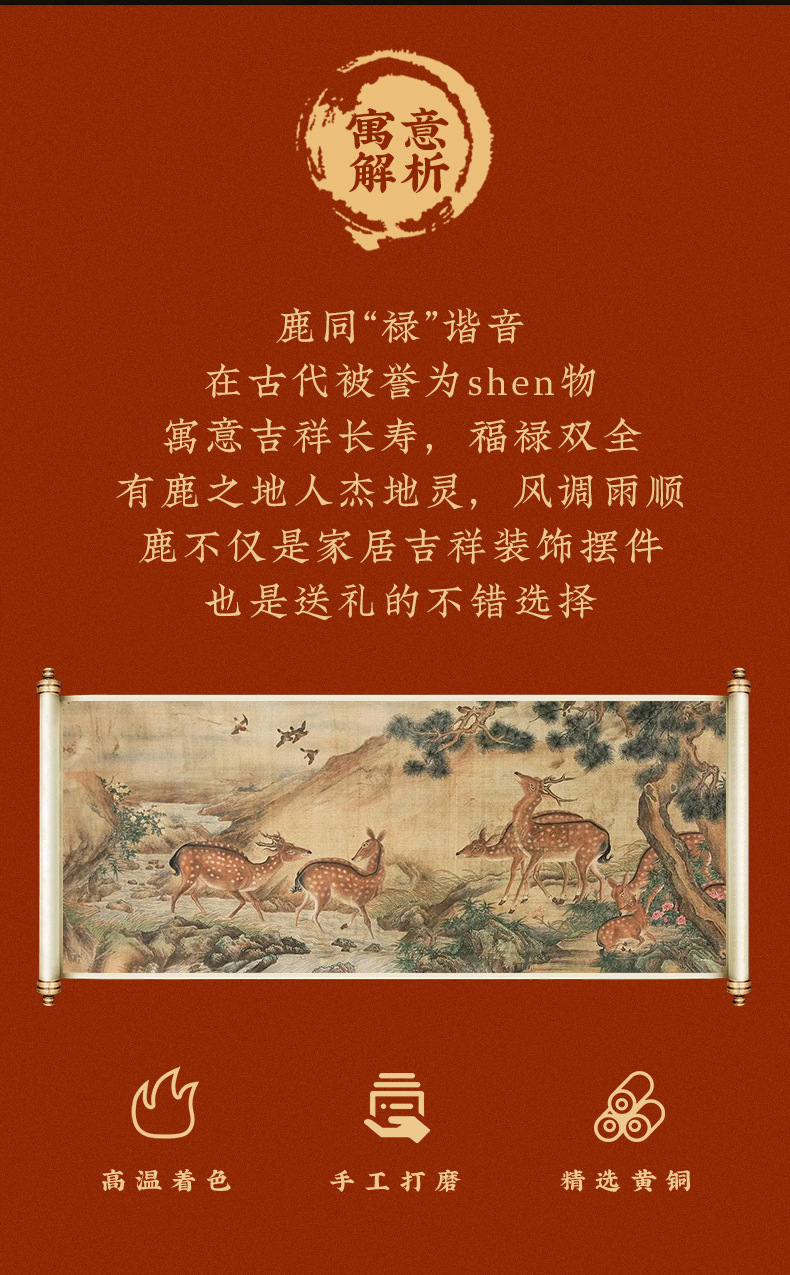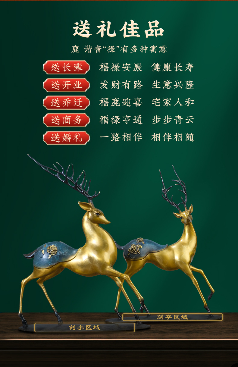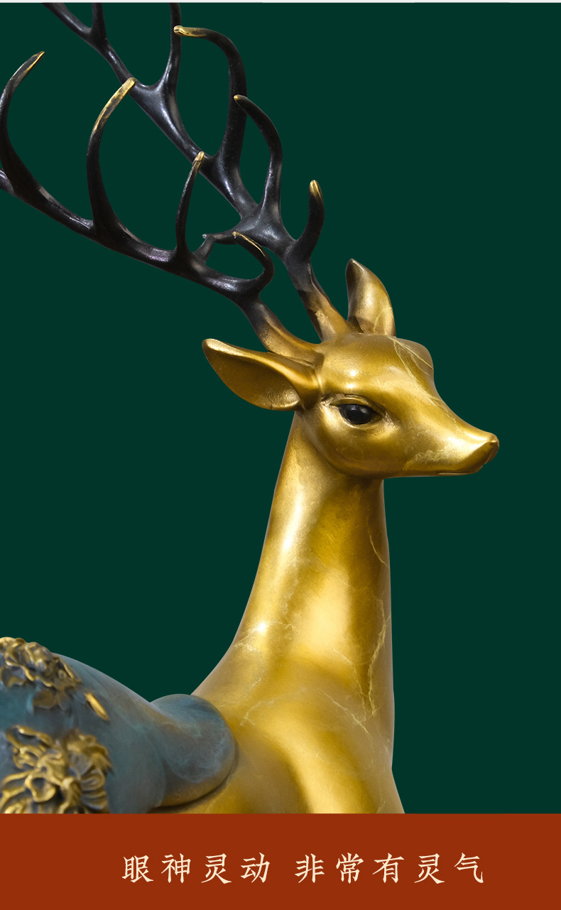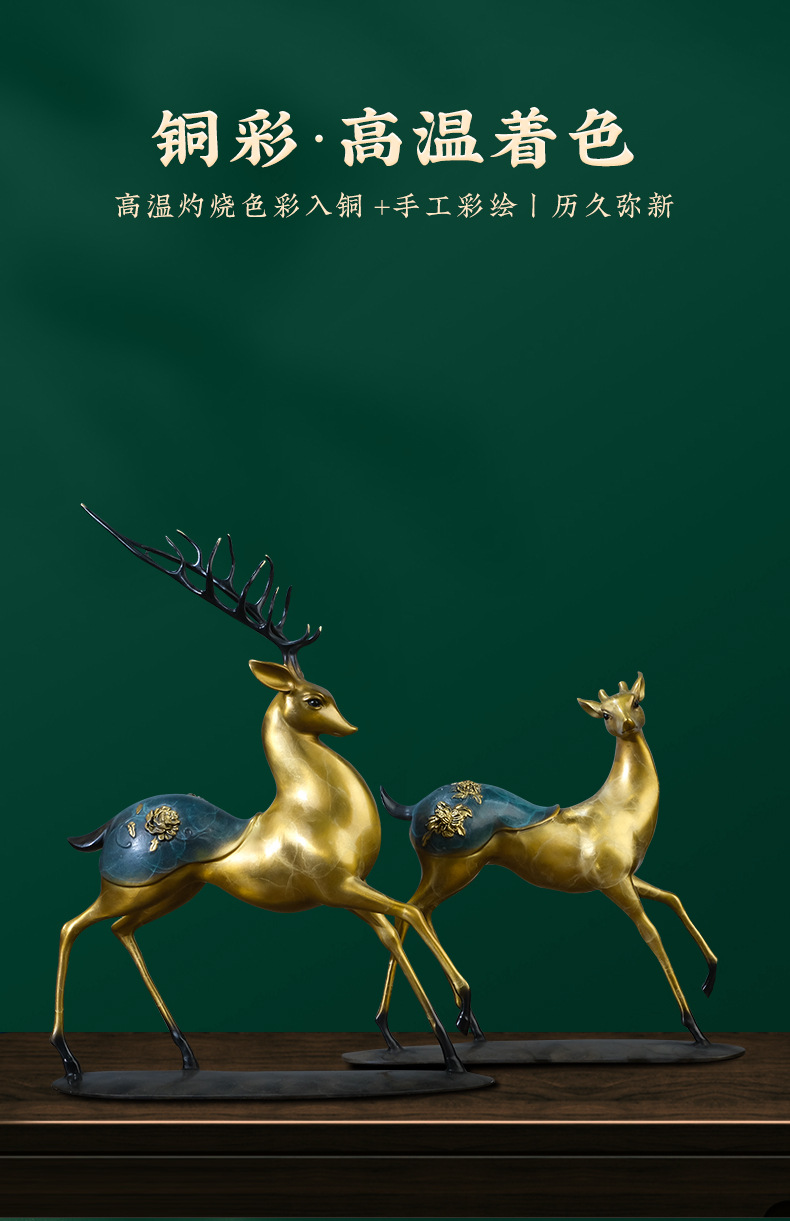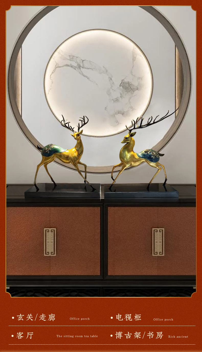 Đồng Vàng Năm Đồng Hươu Trang Trí Thủ Công Mới Phong Cách Trung Hoa Lối Vào Tủ Tivi Phòng Khách Trang Trí Nhà Cửa Tân Gia Quà Tặng