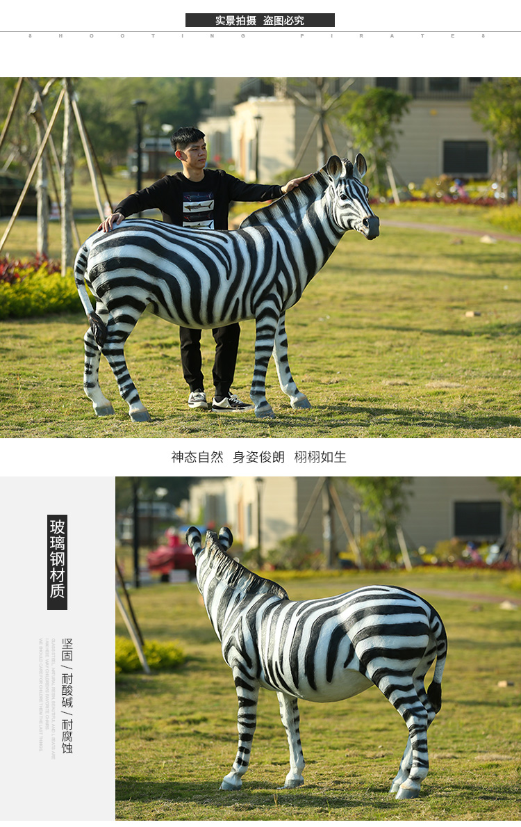 Sản phẩm nổi bật với các đặc điểm: Động vật lớn mô phỏng tác phẩm điêu khắc mô phỏng ngựa vằn sợi thủy tinh gia cố mô hình nhựa trang trí nhà trẻ trang trí vườn ngoài trời rừng phác thảo đồ trang trí
