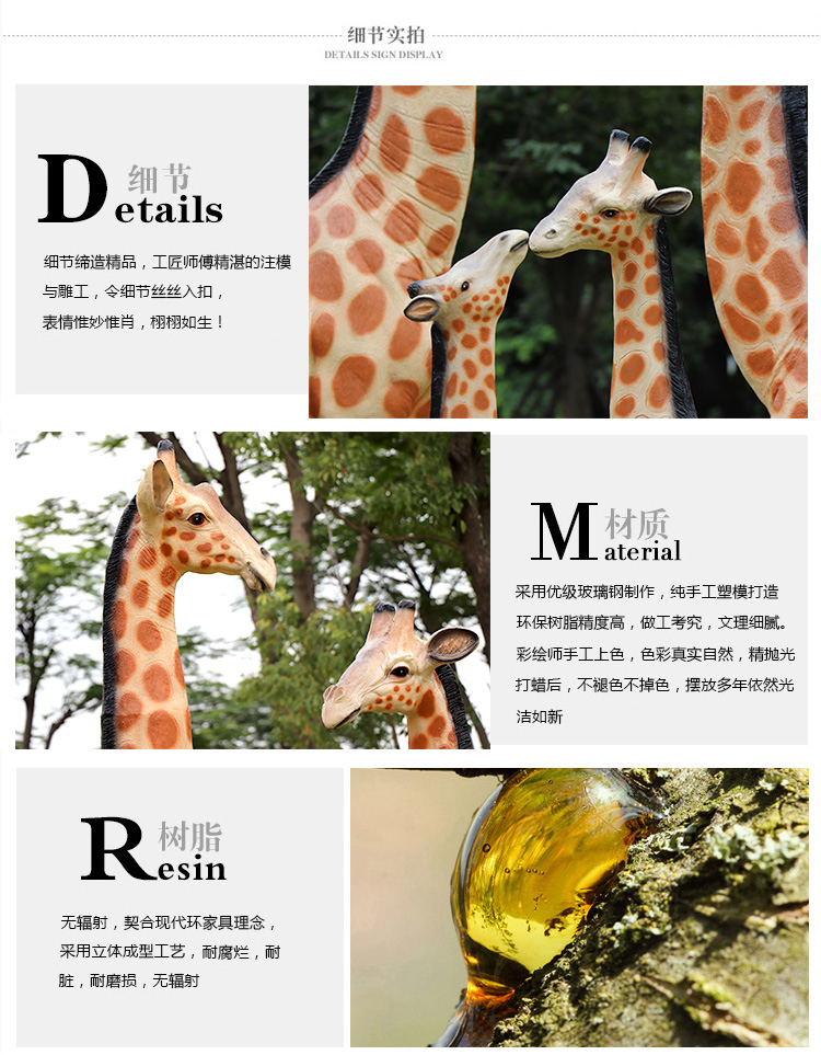 Sản phẩm nổi bật với các đặc điểm: Động vật mô phỏng lớn con hươu cao cổ sợi thủy tinh điêu khắc ngoài trời vườn rừng cộng đồng cảnh quan bãi cỏ trang trí đồ trang trí
