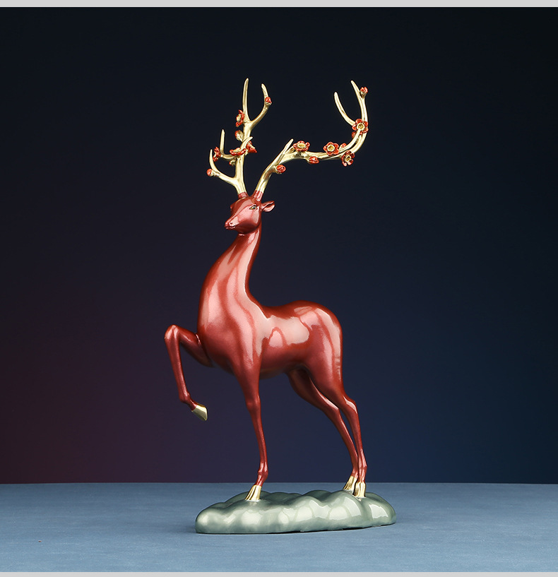 Đồng Vật Trang Trí “Hú Hoa Đào Hươu” Trang Trí Nhà Đồng Thủ Công Mỹ Nghệ Hươu Phòng Khách Máy Tính Để Bàn Tặng