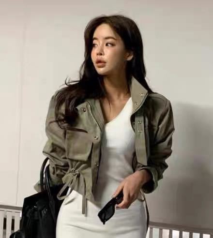 Dongdaemun của Hàn Quốc thiết kế dây rút mới phong cách bạn trai trung tính phù hợp với tất cả các trận đấu Hanfan áo khoác ngắn áo khoác nữ Gary