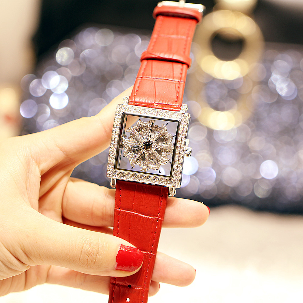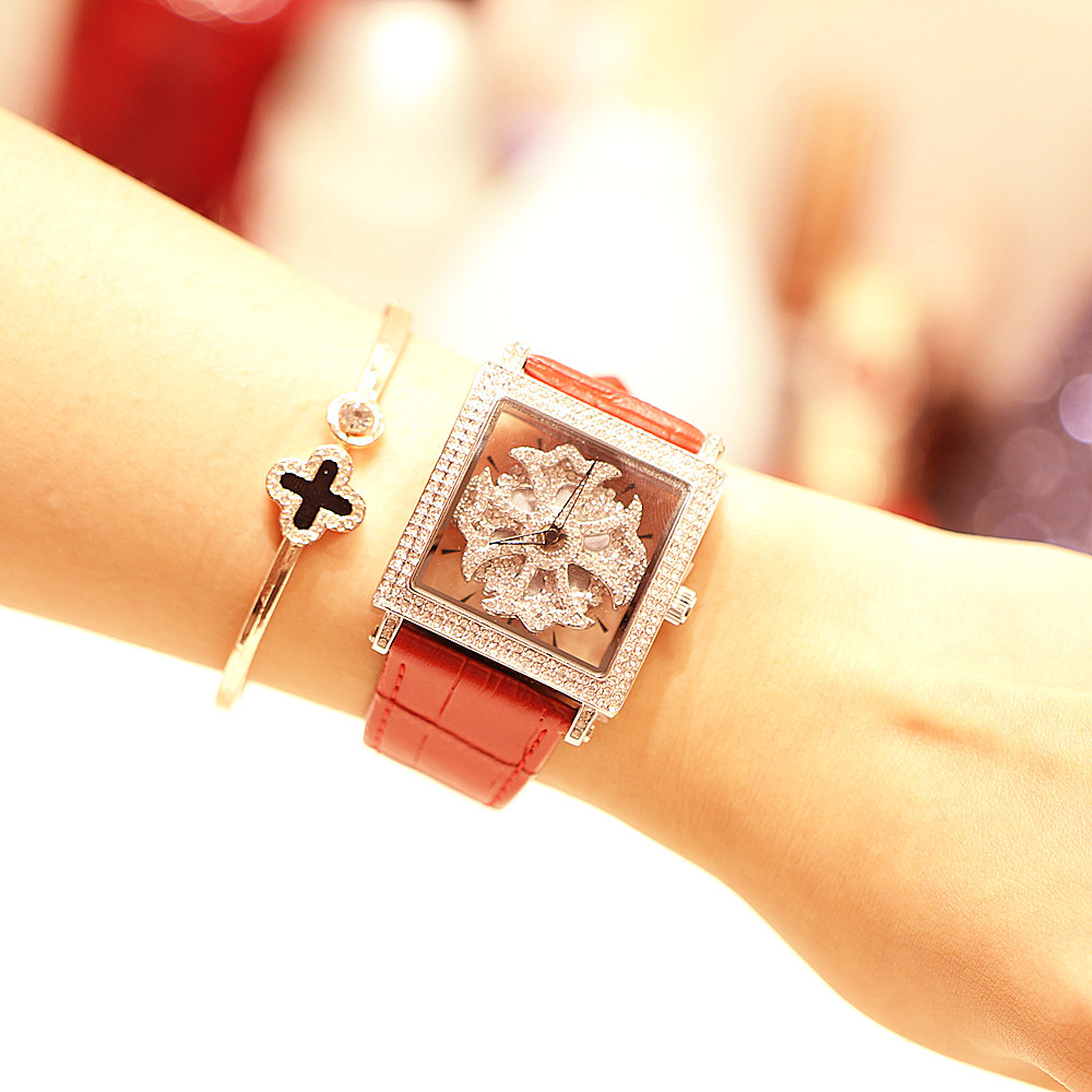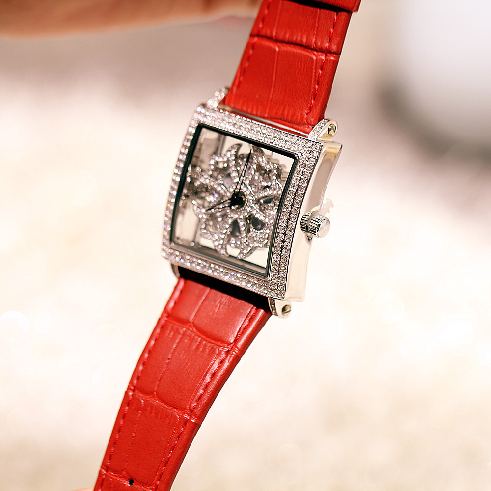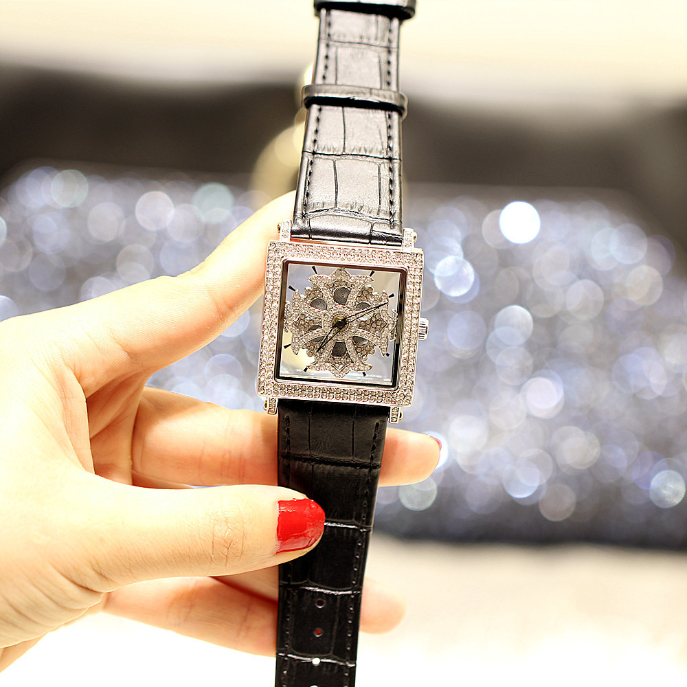 Douyin cùng phong cách mới đồng hồ nữ thời trang chính hãng kim cương vuông thời gian để chạy đồng hồ thủy triều chống nước dây thật
