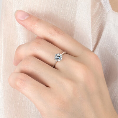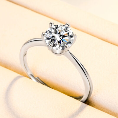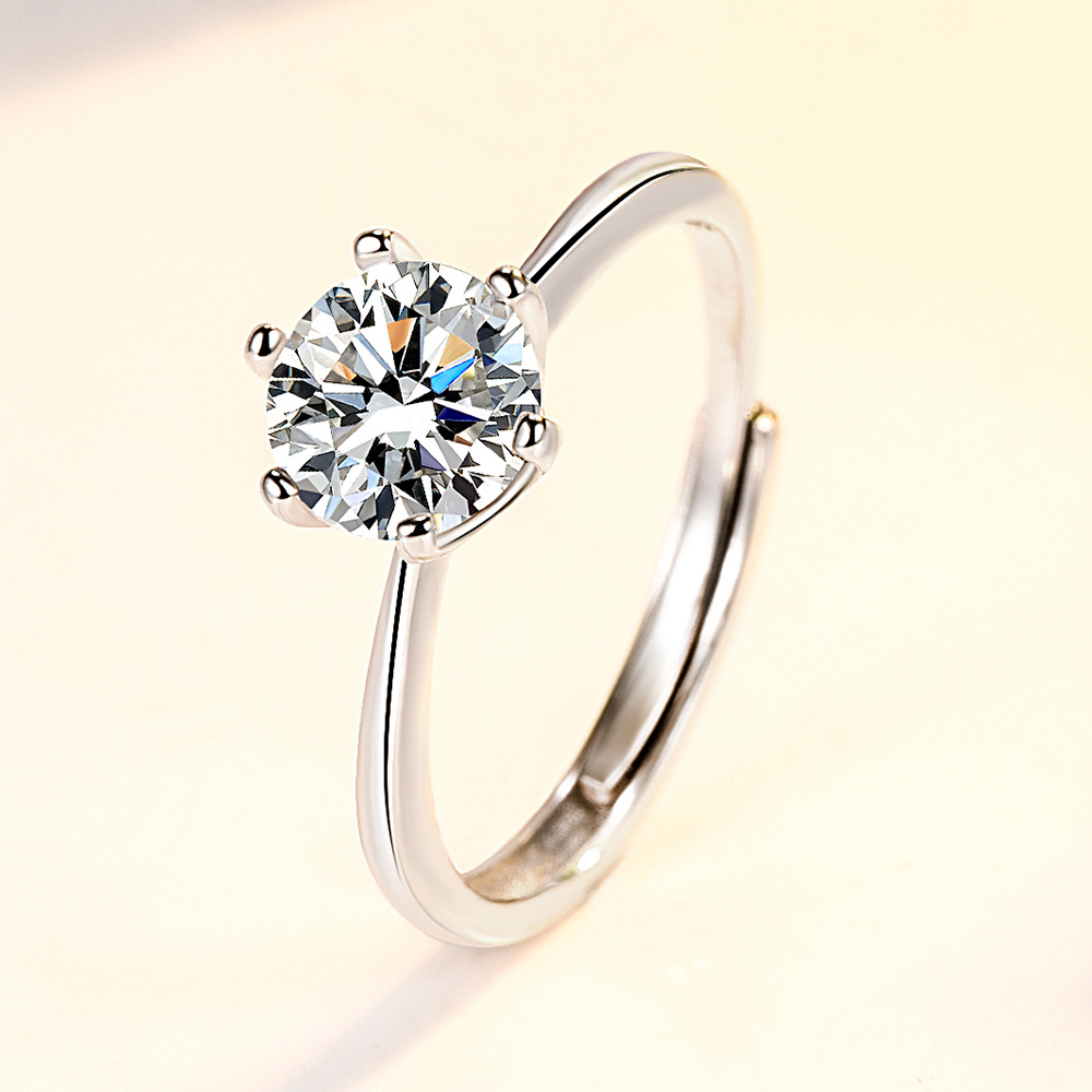 Douyin Kuaishou Lưới Đỏ Nhẫn Cầu Hôn Cặp Nhẫn Nhẫn Kim Cương 6 Móng Dát Moissanite Kim Cương Mở Nhẫn Nữ