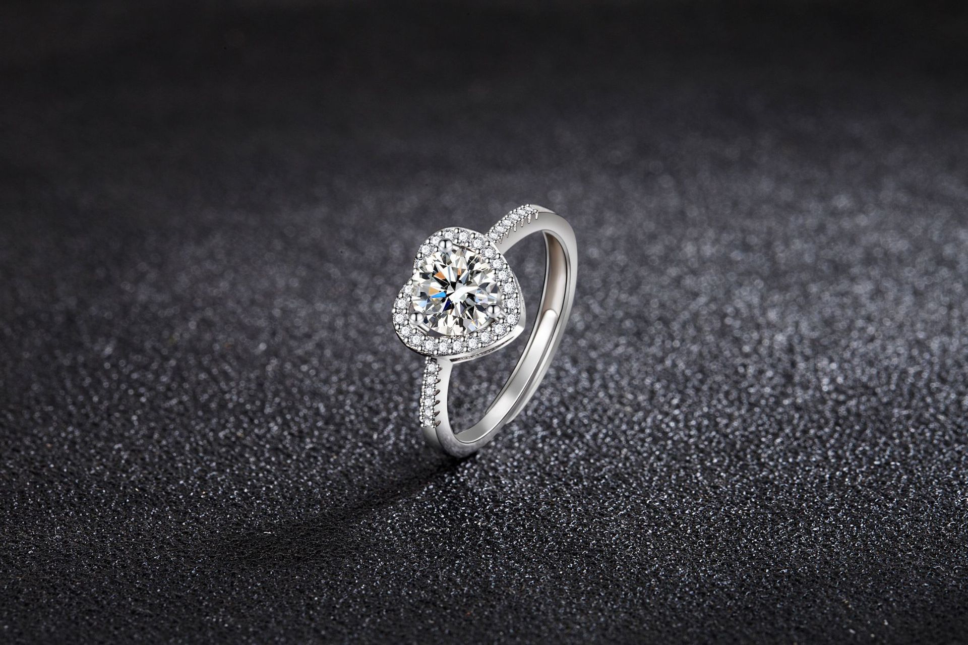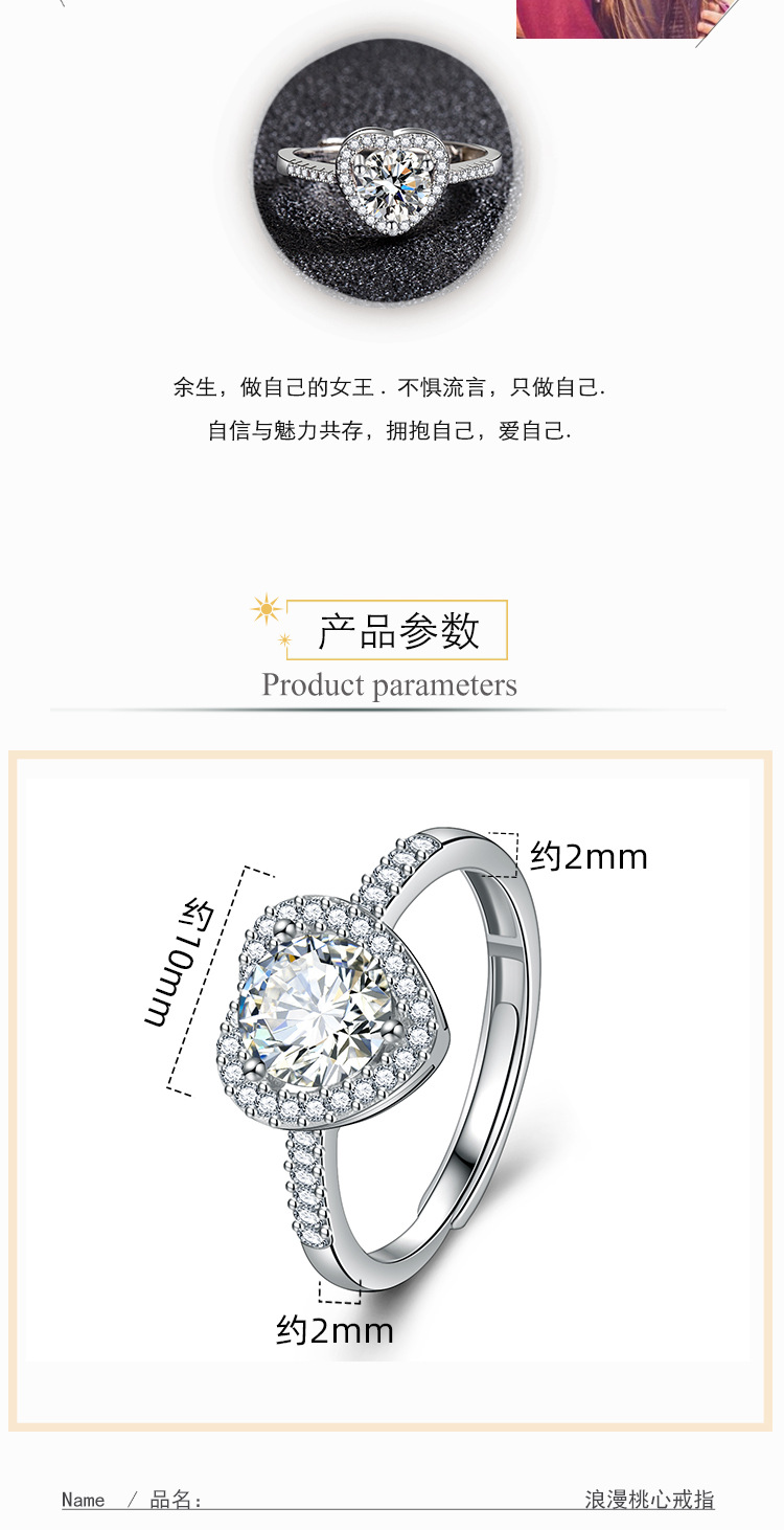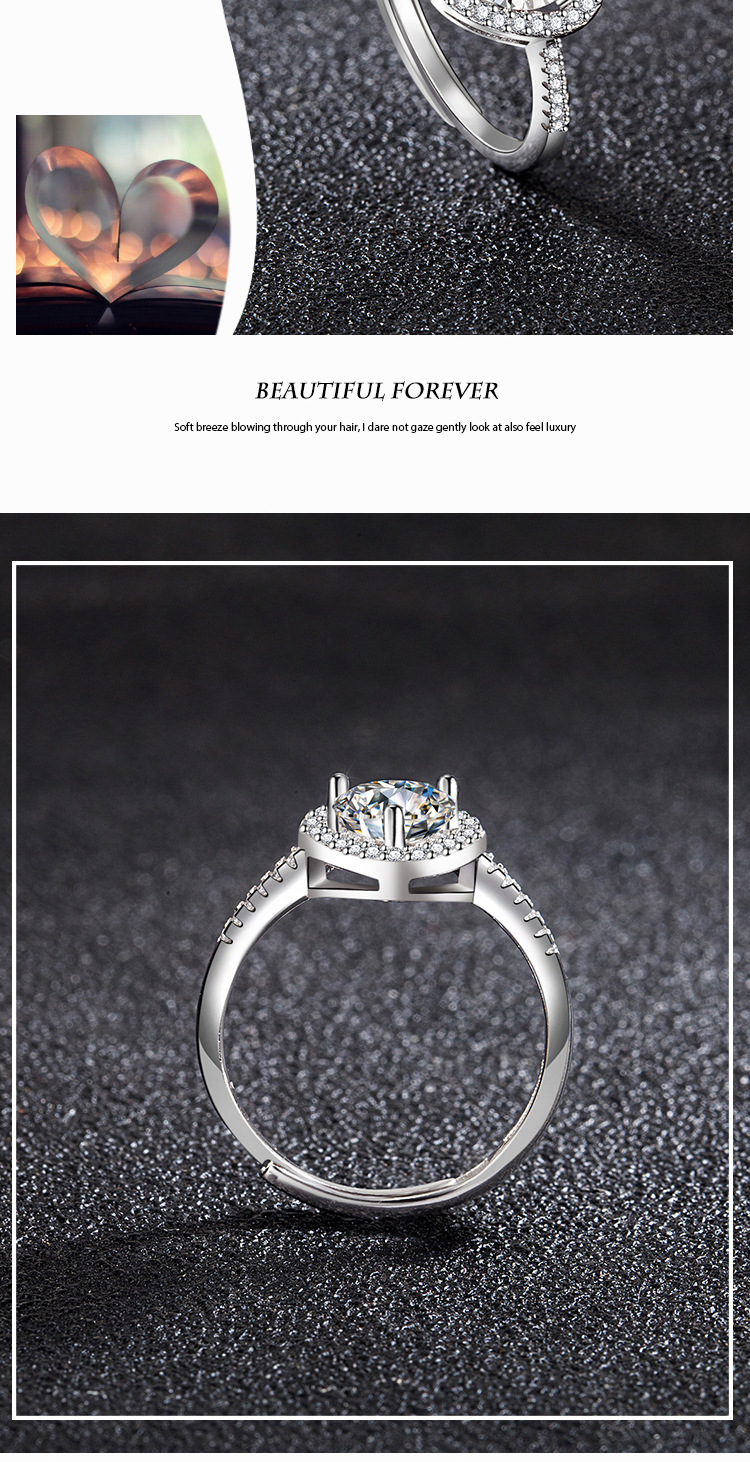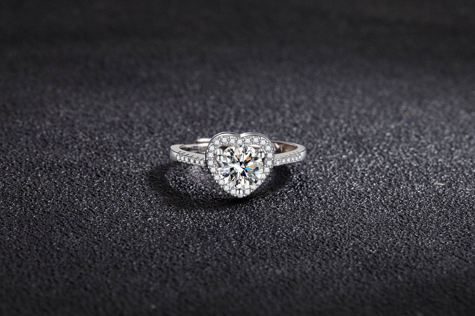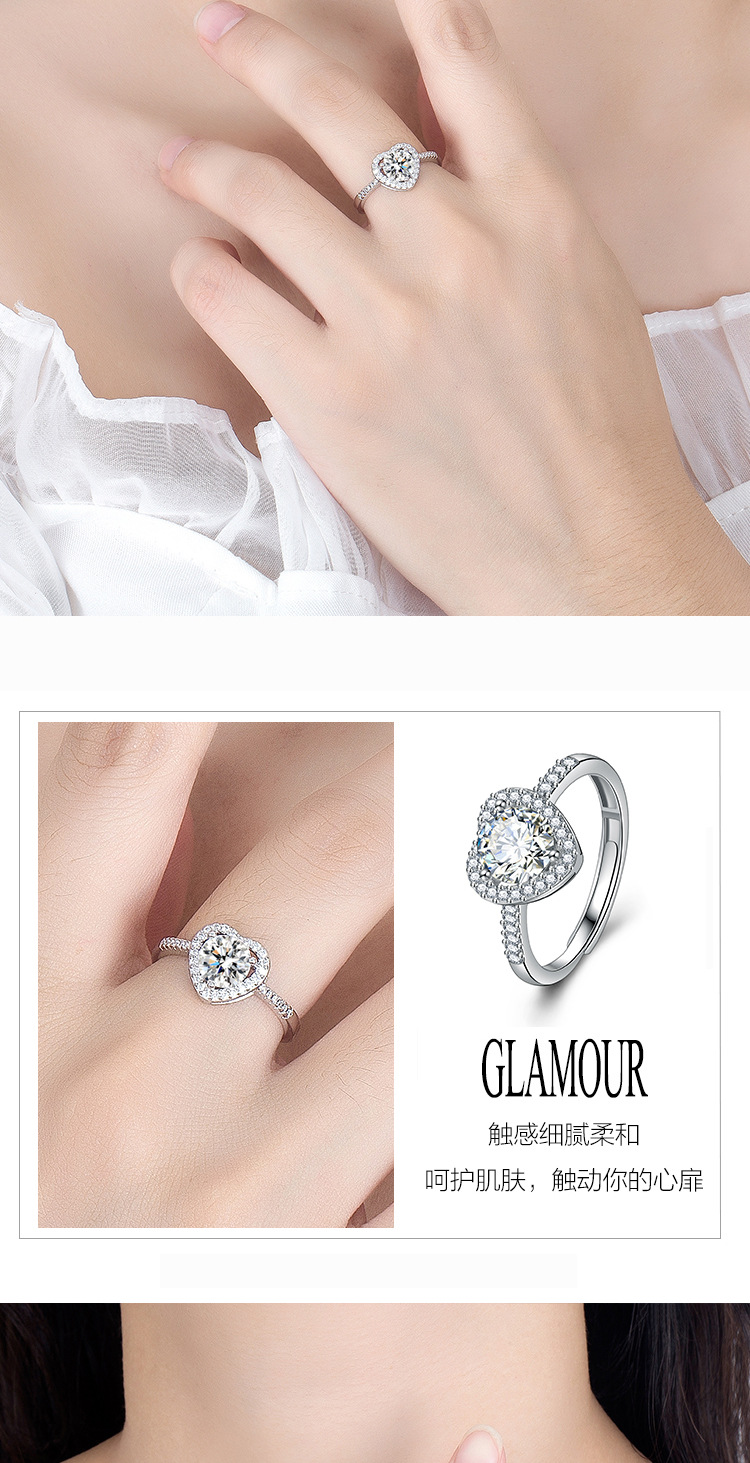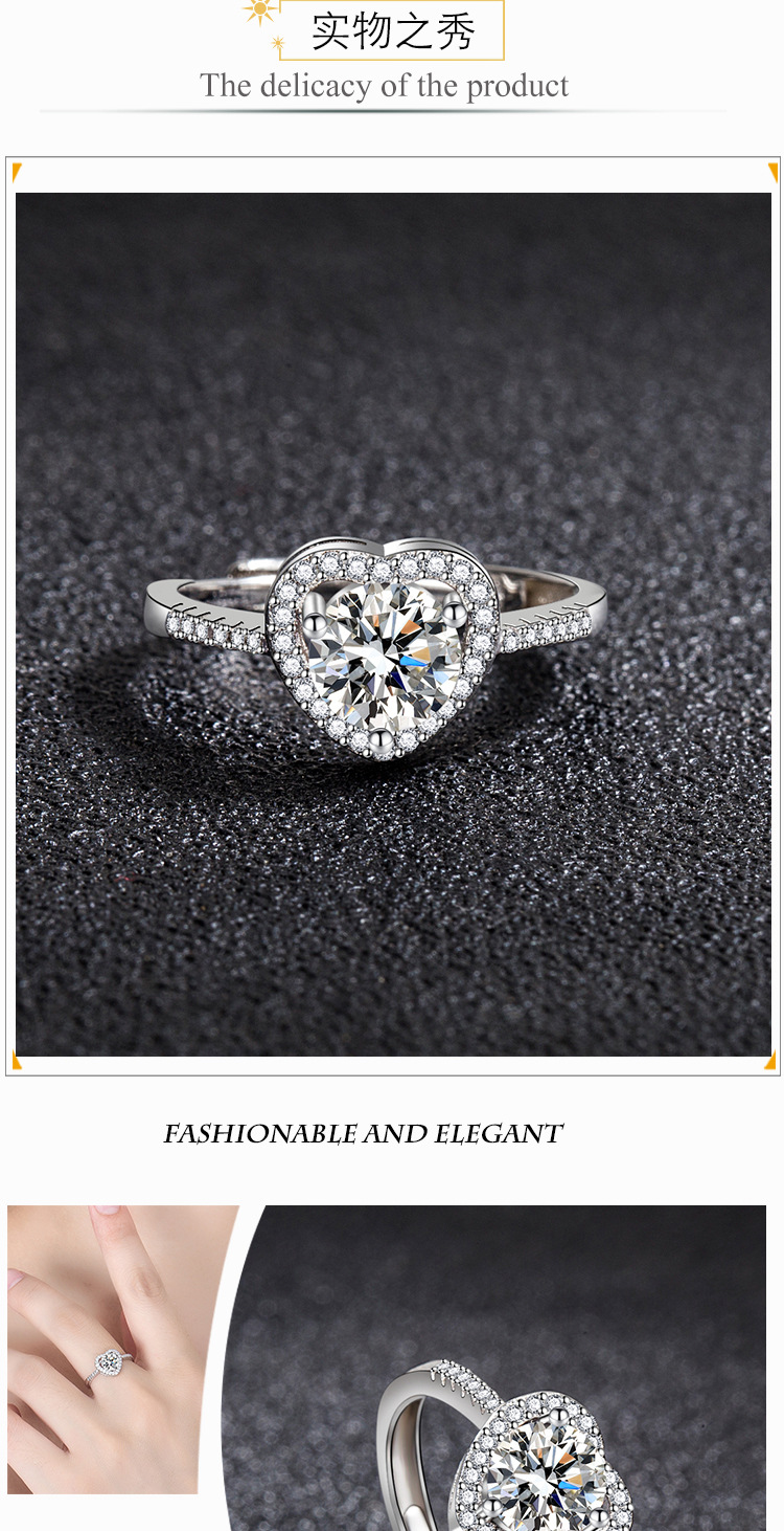 Douyin Kuaishou thời trang nhẫn đính đá Zircon vẻ đẹp ngọt ngào hình trái tim rỗng nhẫn một carat giả moissanite nhẫn tình yêu