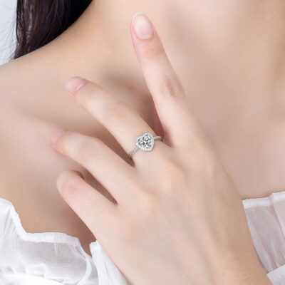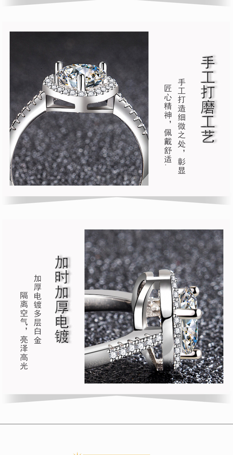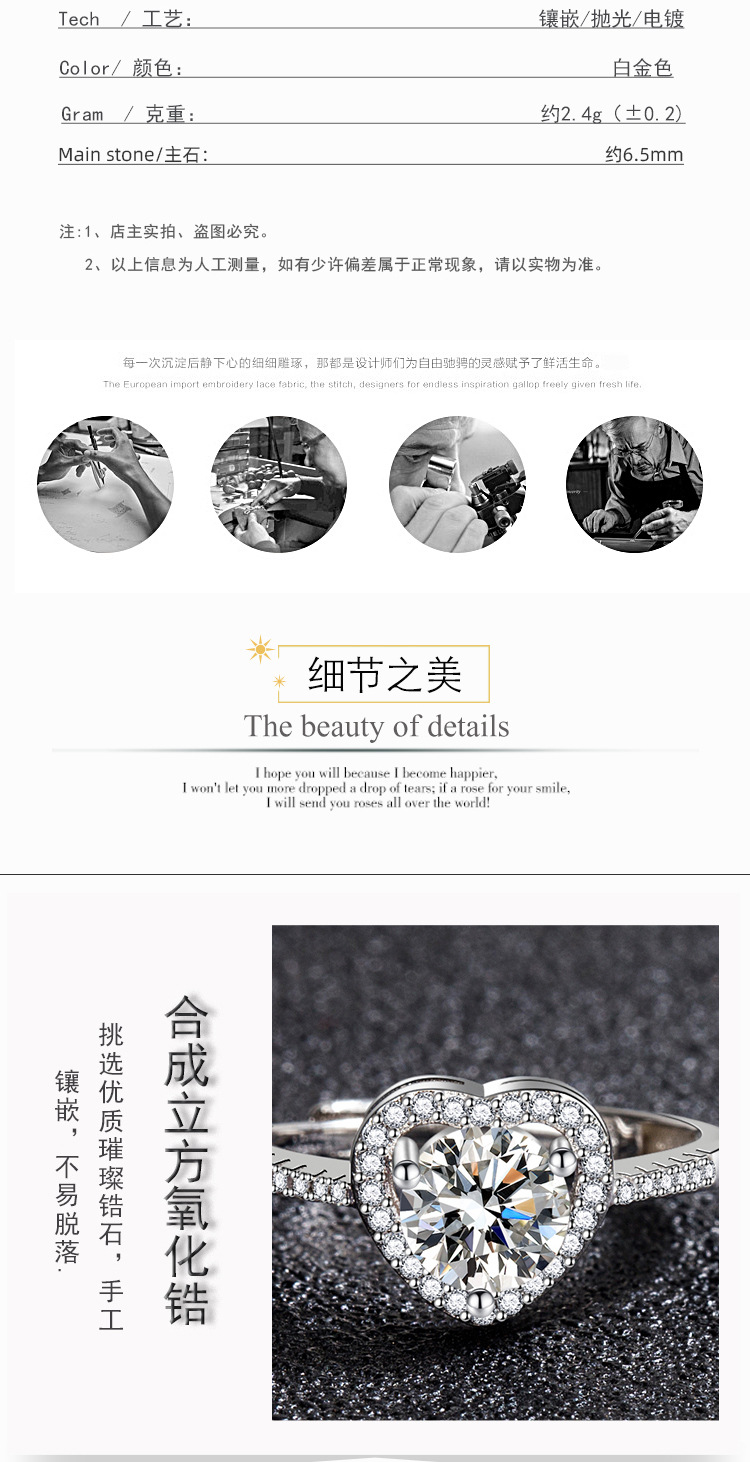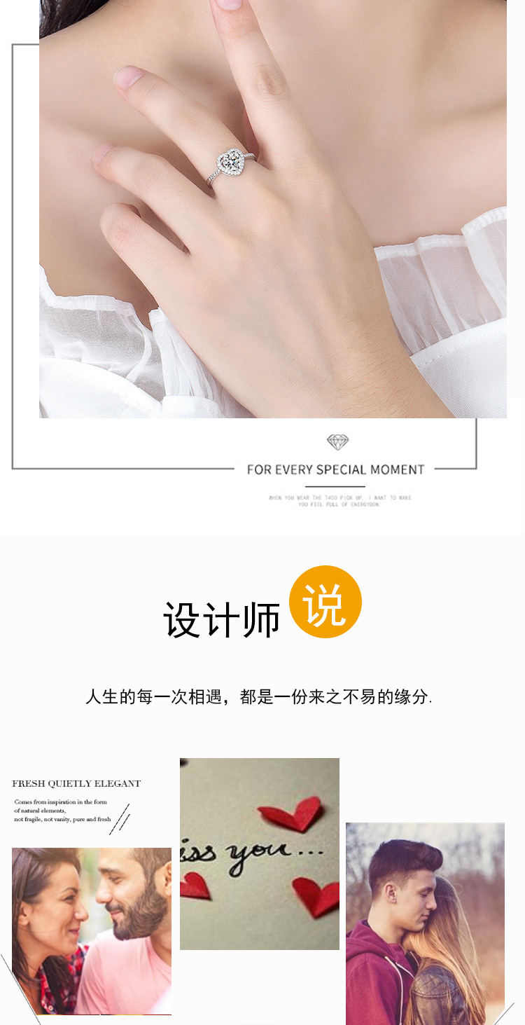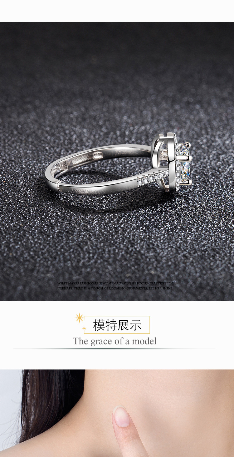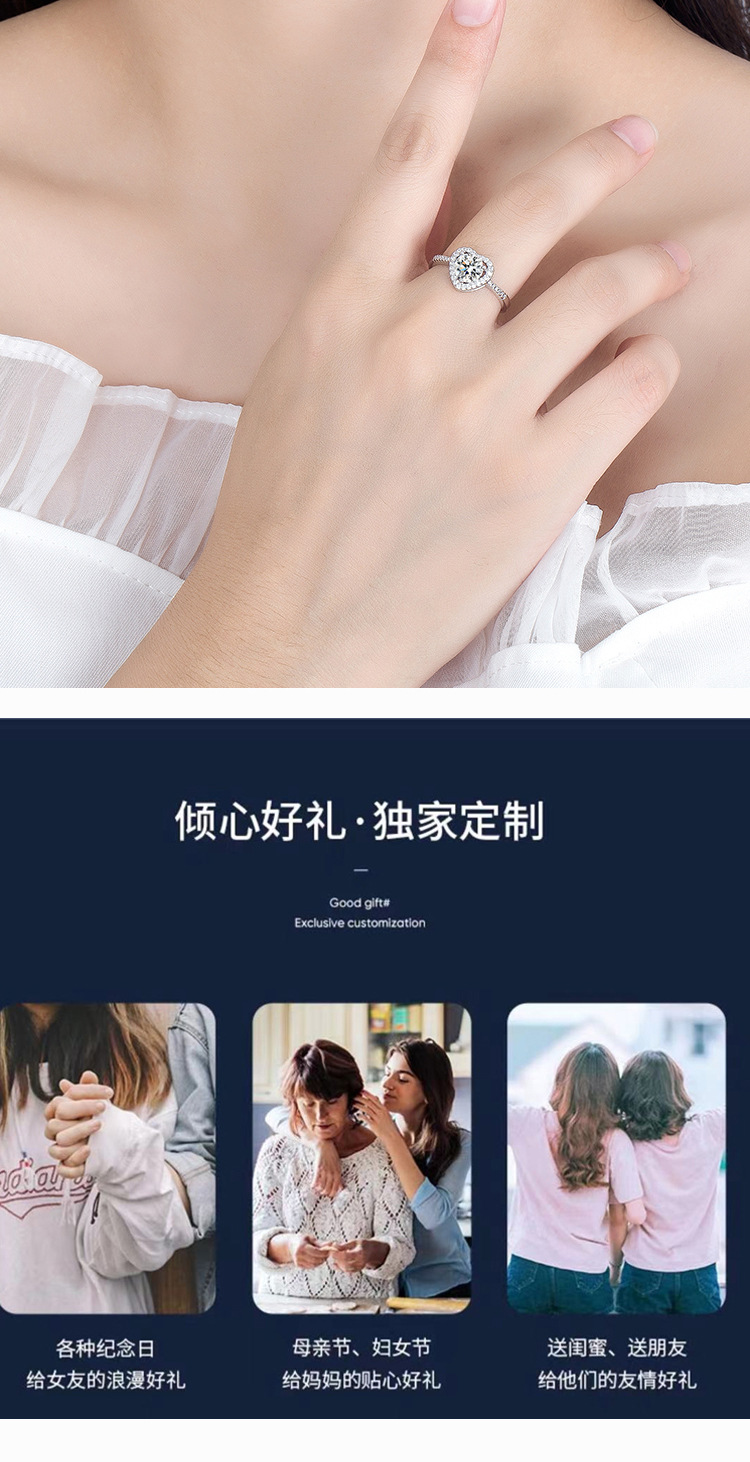 Douyin Kuaishou thời trang nhẫn đính đá Zircon vẻ đẹp ngọt ngào hình trái tim rỗng nhẫn một carat giả moissanite nhẫn tình yêu