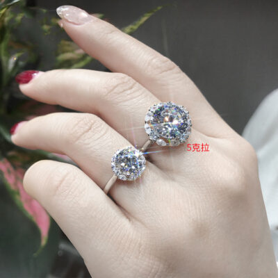 Douyin lưới màu đỏ phong cách nóng bỏng quả trứng chim bồ câu kim cương lớn của nữ hoàng 5 carat giả moissanite kim cương carbon cao nhẫn kiểu Nhật nhẹ sang trọng