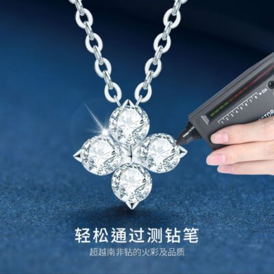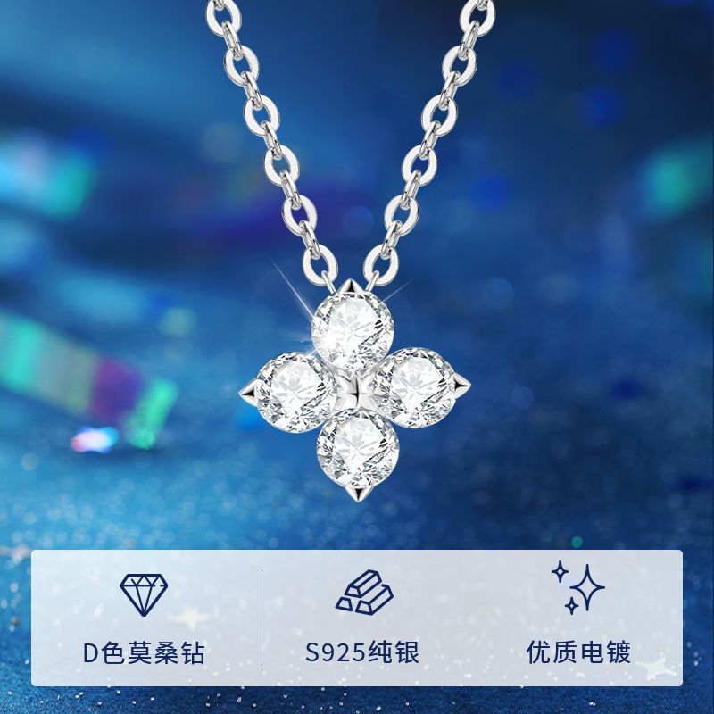 Douyin lưới màu đỏ thời trang tất cả các trận đấu cỏ bốn lá D màu Vòng cổ kim cương Moissanite tính khí S925 mặt dây chuyền hoa vàng K mạ bạc