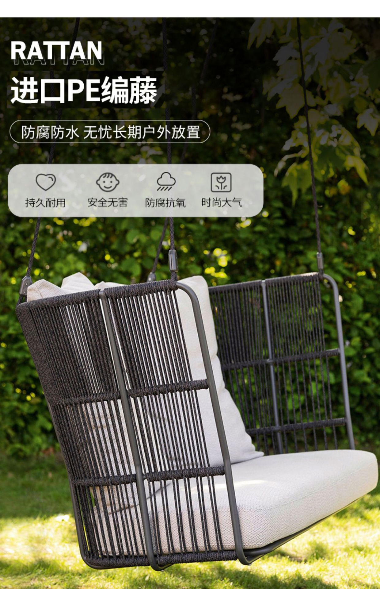 Đu mây ngoài trời xích đu sân vườn ban công ghế mây xích đu đôi sân vườn biệt thự người lớn ghế treo nôi nôi ngoài trời