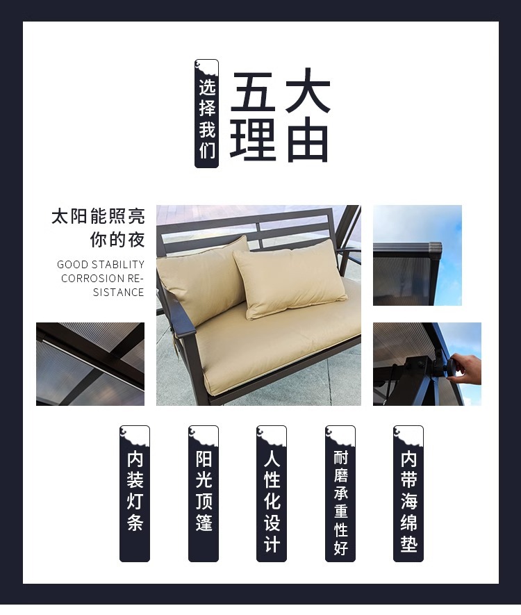 Đu ngoài trời năng lượng mặt trời ghế bập bênh sắt rèn ban công giải trí ngoài trời lớn treo ghế sân vườn xích đu đôi