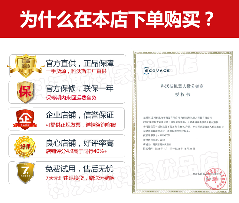 本店是科沃斯官方授权店铺,所有产品都从科沃斯原厂发货,品质和服务都有保障。