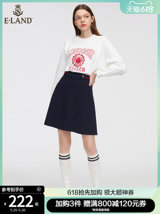 ELAND 2022 mùa xuân mới thanh lịch đi làm nút trang trí màu xanh hải quân váy chữ A váy ngắn phụ nữ