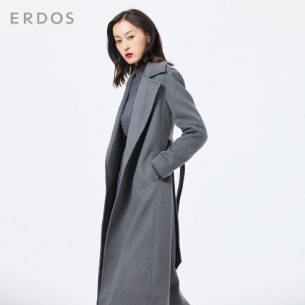 ERDOS mùa thu và mùa đông màu đơn giản ve áo thẳng dày lên dài áo khoác nữ cashmere thẳng áo khoác đi lại hoang dã