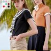 Evelyn cotton T-shirt của phụ nữ 2022 mùa hè mới hoa văn hình hoa dưới cùng áo sơ mi nữ thiết kế hàng đầu cảm giác ngắn tay t