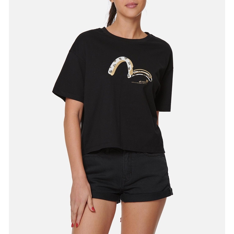 EVISU EVISUKURO 21SS nữ mặc nhà hoa hải âu in áo thun ngắn tay ngắn tay nữ