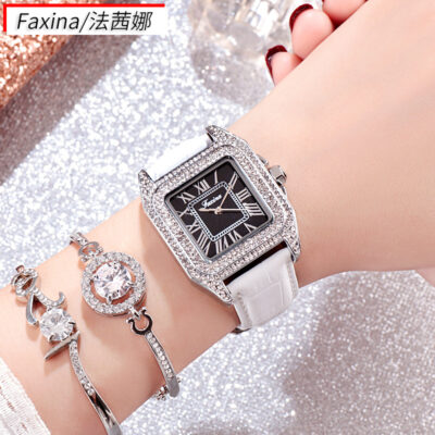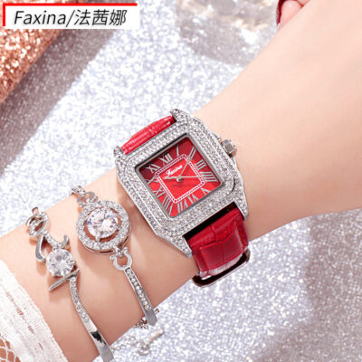 Fasina Douyin Đồng Hồ Nữ Mặt Vuông Thời Trang Retro Đồng Hồ Đơn Giản Đồng Hồ Nữ Hợp Kim Đính Kim Cương