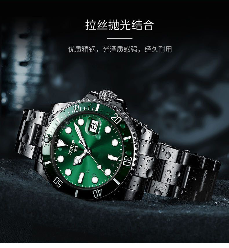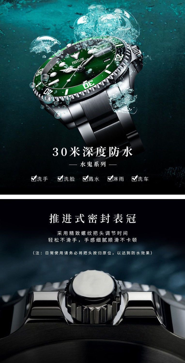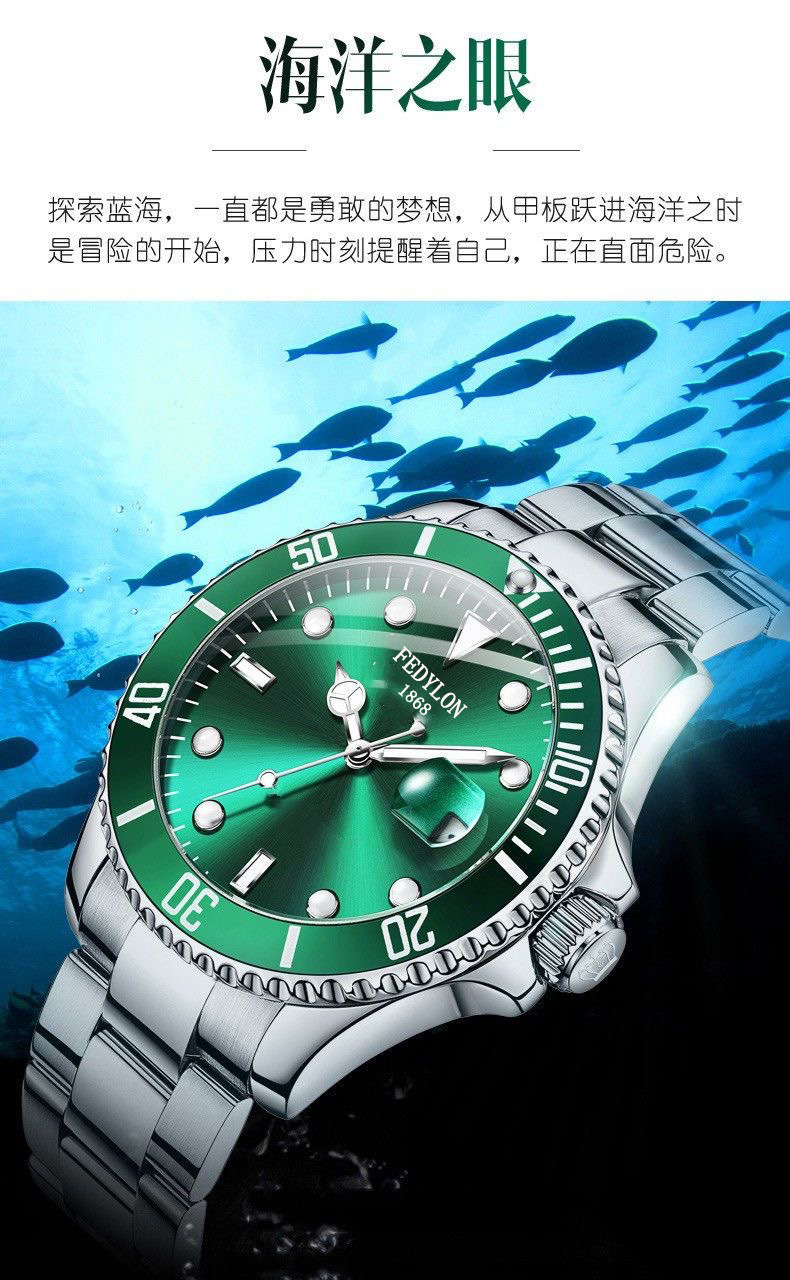 Fertilun Chính Hãng Thụy Sĩ Xanh Nước Ma Nam Dạ Quang Chống Thấm Nước Đồng Hồ Tự Động Sinh Viên Cơ Thạch Anh