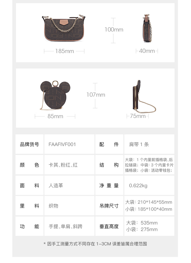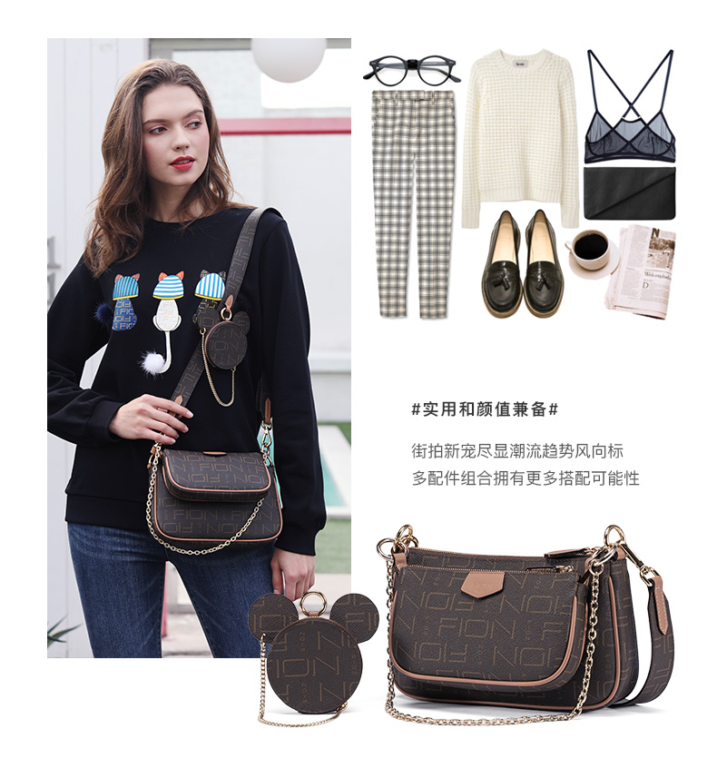 Fion / Fianne 2019 túi mạt chược mới túi nữ ba trong một túi đeo chéo vai đa năng túi đeo vai