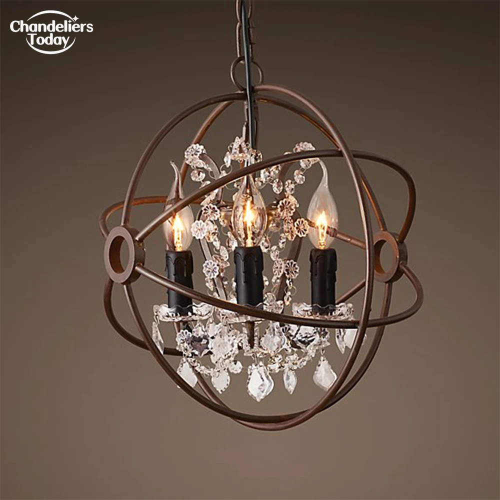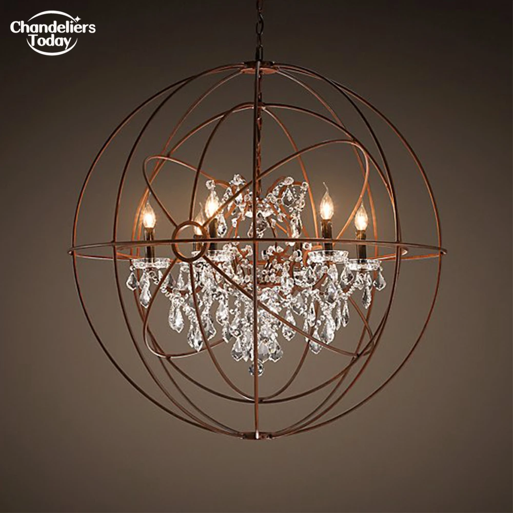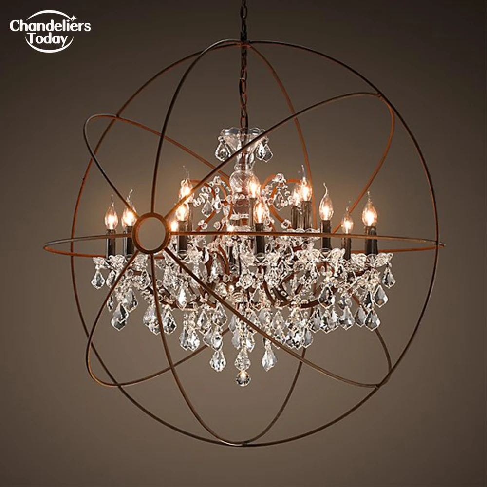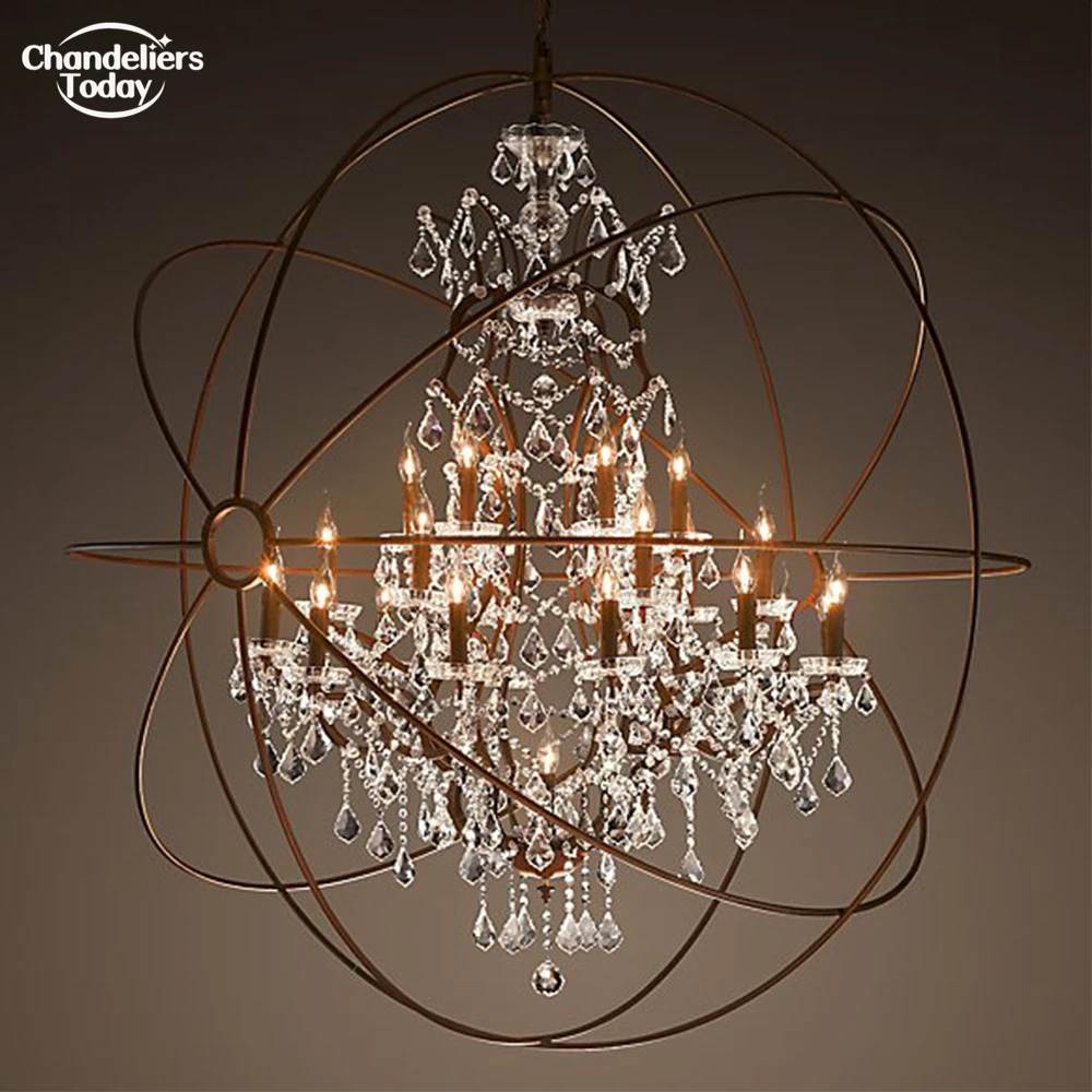 Foucault’s Orb Crystal Chandelier Traditional Globe Rustic Pendant Chandelier LED Vintage Clear Cristal Light Fixture for Foyer