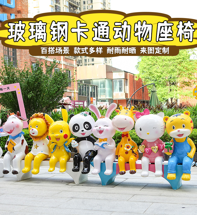 FRP động vật ghế điêu khắc phim hoạt hình ngoài trời đường phố thương mại trung tâm mua sắm sảnh trung tâm bán hàng bộ phận bán hàng trang trí giải trí đồ trang trí là lựa chọn lý tưởng cho không gian công cộng, sân vườn hoặc khu đô thị. Sản phẩm giúp nâng cao hình ảnh chuyên nghiệp và sạch đẹp cho môi trường sống.