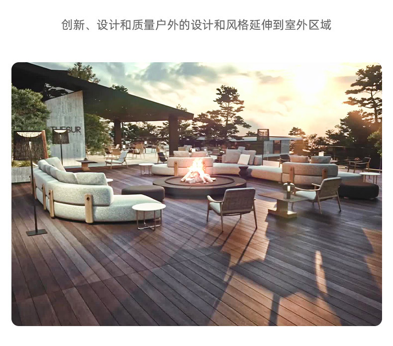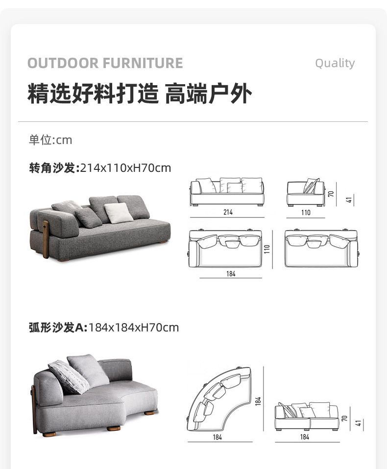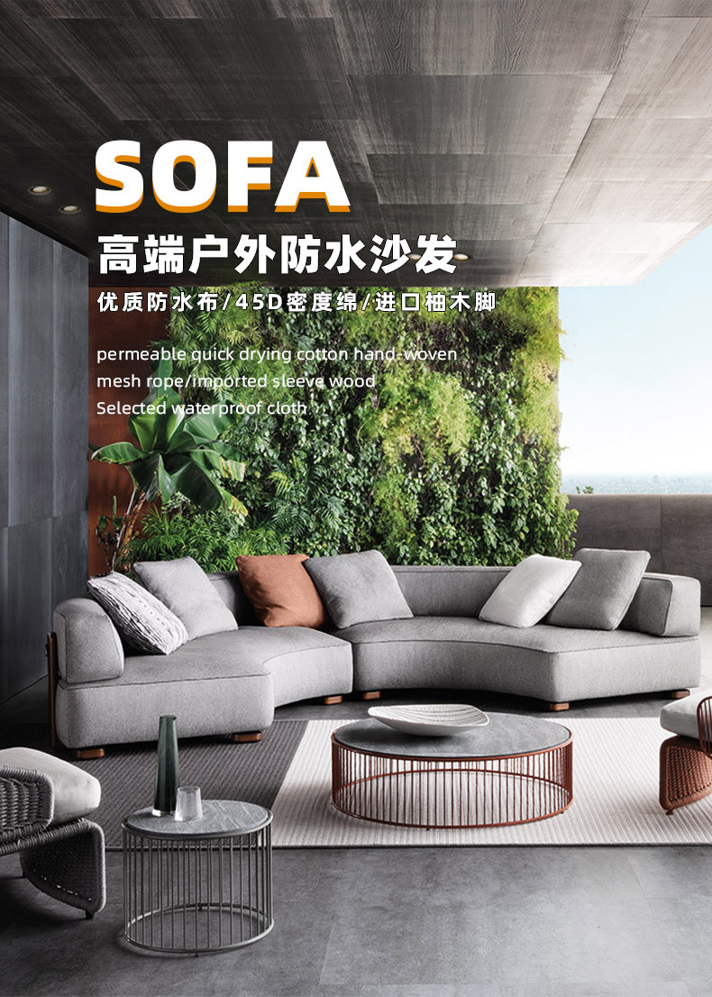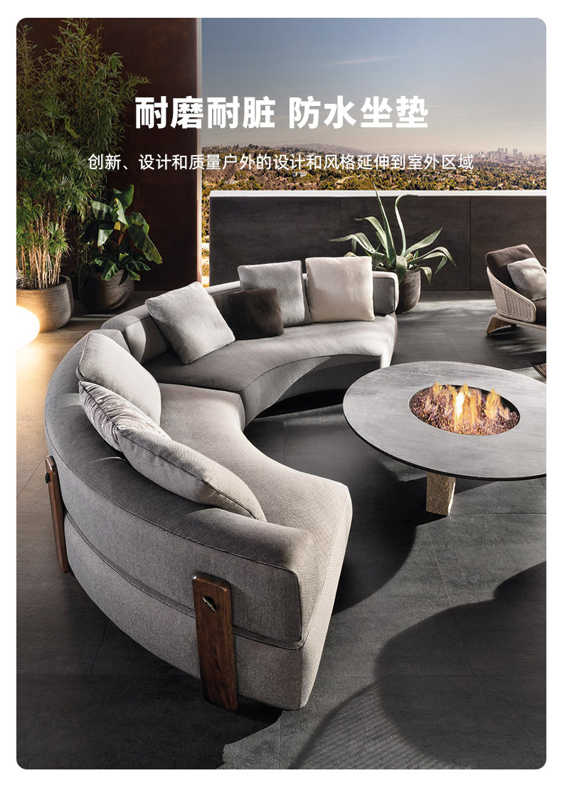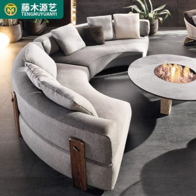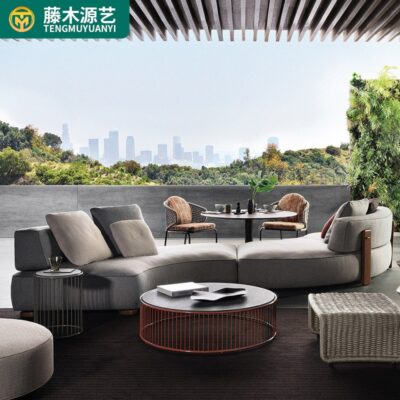 Fujiki Yuanyi Bắc Âu gỗ rắn sofa vải sân khách sạn ngoài trời sáng tạo chống nắng kết hợp sofa ngoài trời chống thấm nước