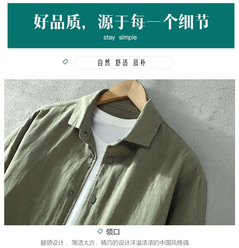 G0101 Văn Học Thanh Niên Giản Dị Nam Áo Khoác Dài Tay Thoải Mái, Thoáng Khí, Tự Nhiên, Đa Năng Giao Hàng Một Mảnh