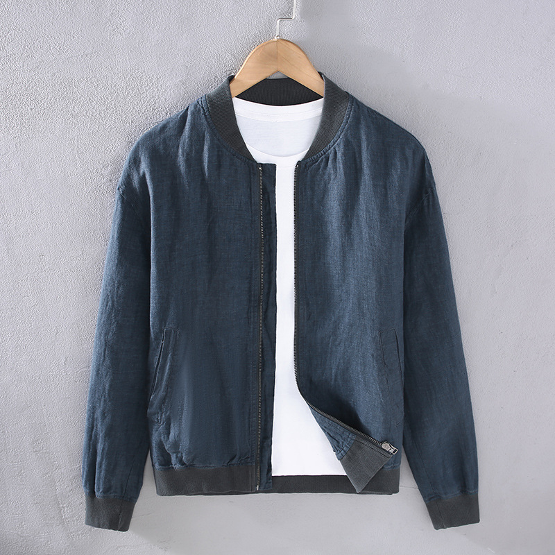 G090 Literary Youth Áo khoác dài tay dáng rộng vải lanh thông thường cho nam Thoải mái, thoáng khí, tự nhiên, đa năng Giao hàng một mảnh