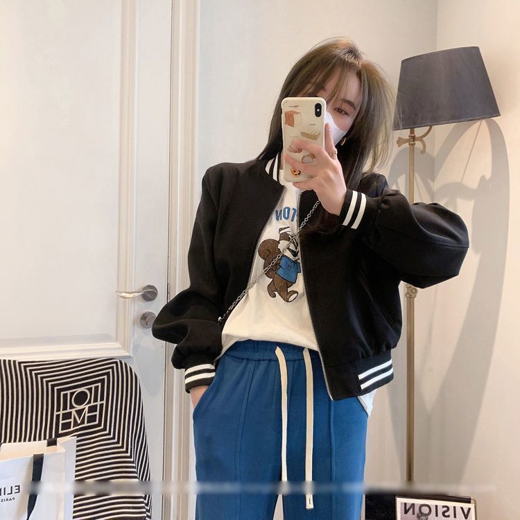 Ga Châu Âu Ngắn Áo Khoác Bóng Chày Nữ 2023 Thời Trang Mùa Xuân Và Mùa Thu Mới Tất Cả Trận Đấu Áo Khoác Thể Thao Cardigan Xu Hướng