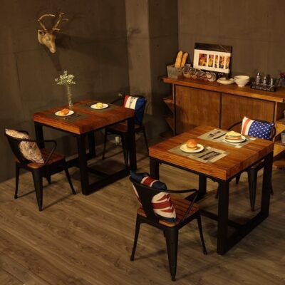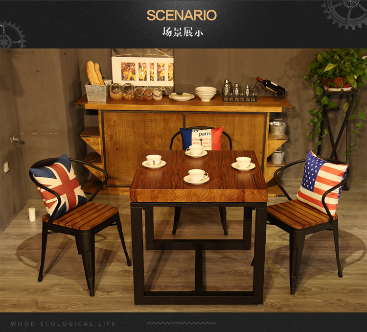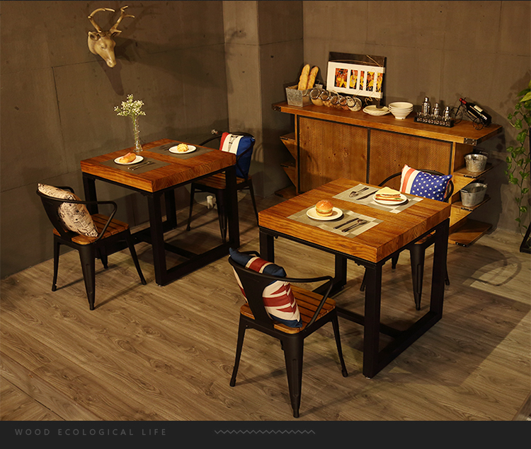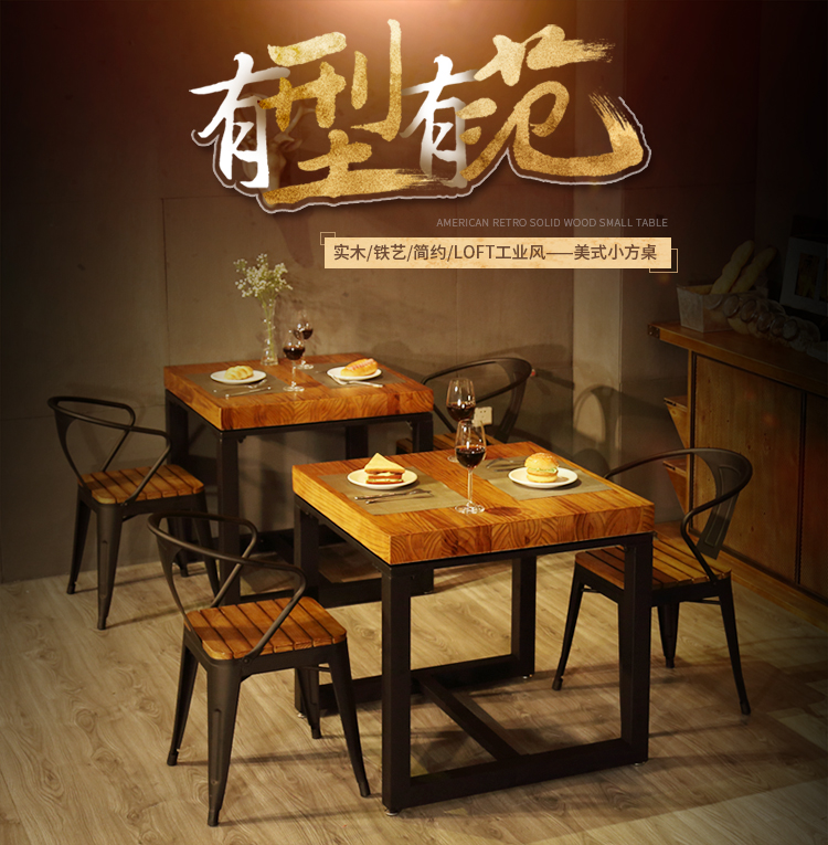Gác xép mỹ gỗ đặc bàn ăn và ghế kết hợp cafe nhà hàng sắt rèn bàn vuông nhỏ snack bar nhà hàng lẩu bàn ăn