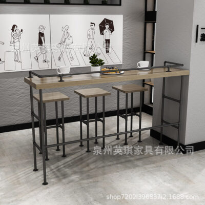 Gác xép mỹ gỗ đặc bàn ăn và ghế kết hợp cafe nhà hàng sắt rèn bàn vuông nhỏ snack bar nhà hàng lẩu bàn ăn