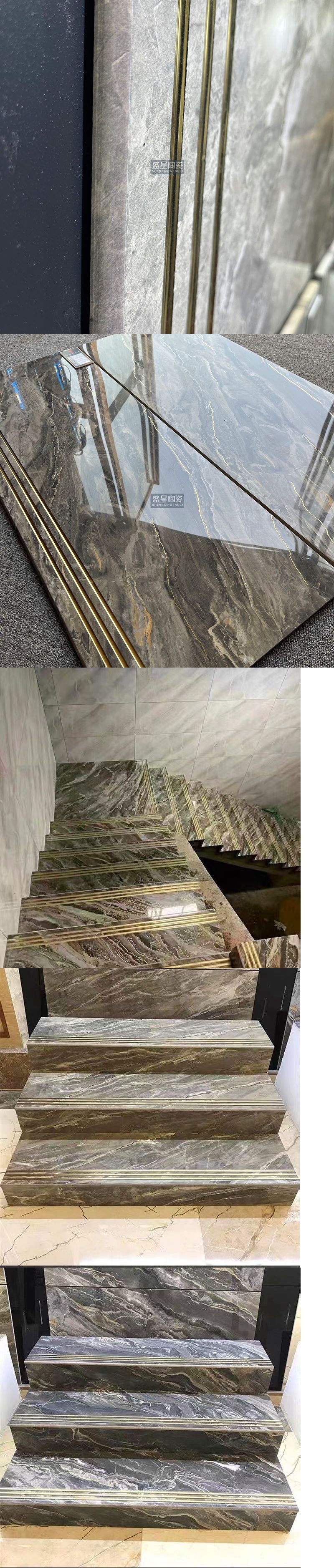 Gạch lát nền 1,2 mét cầu thang mạ vàng toàn thân cạnh vòng cung tráng men đá cẩm thạch sứ một mảnh bậc sứ chống trượt Amazon