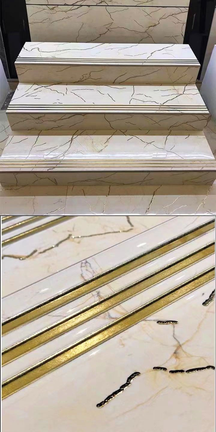 Gạch lát nền 1,2 mét cầu thang mạ vàng toàn thân cạnh vòng cung tráng men đá cẩm thạch sứ một mảnh bậc sứ chống trượt Amazon