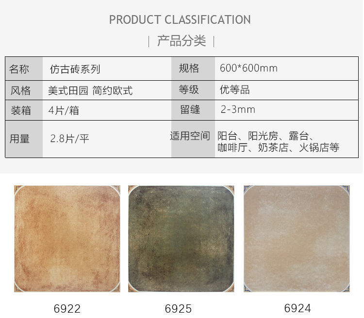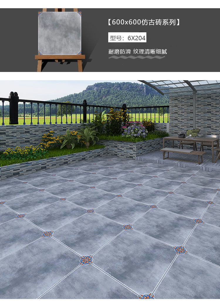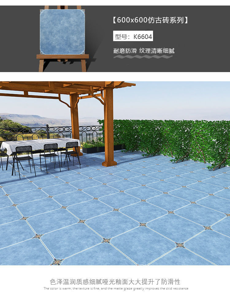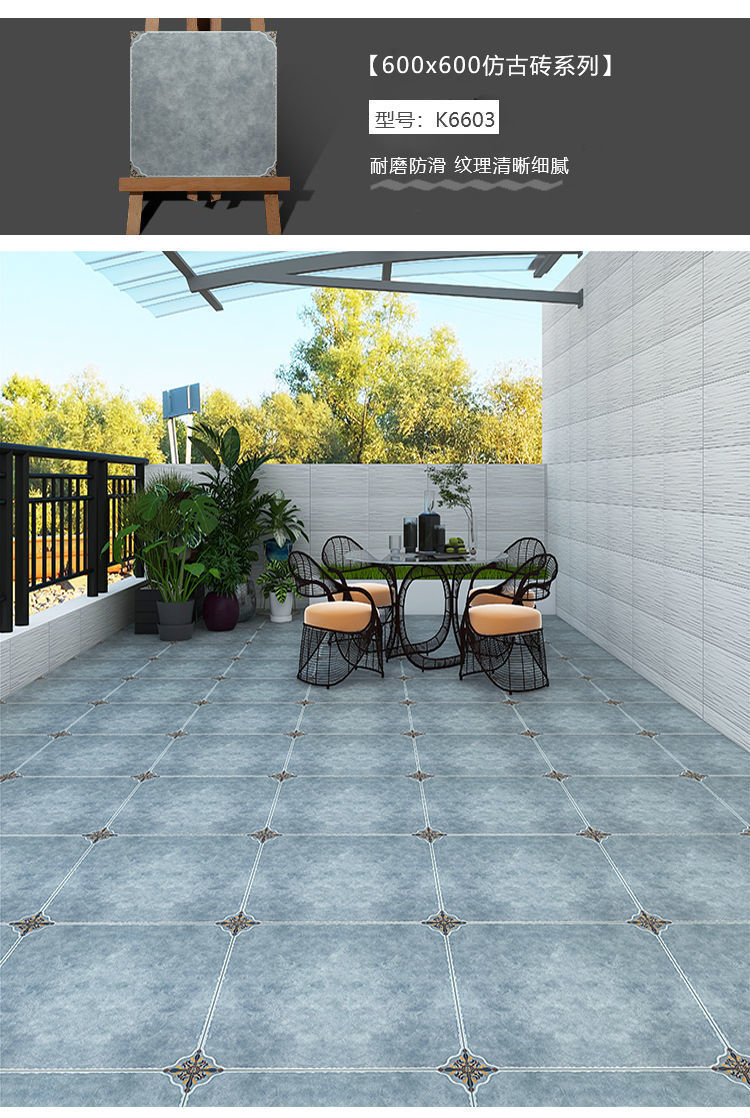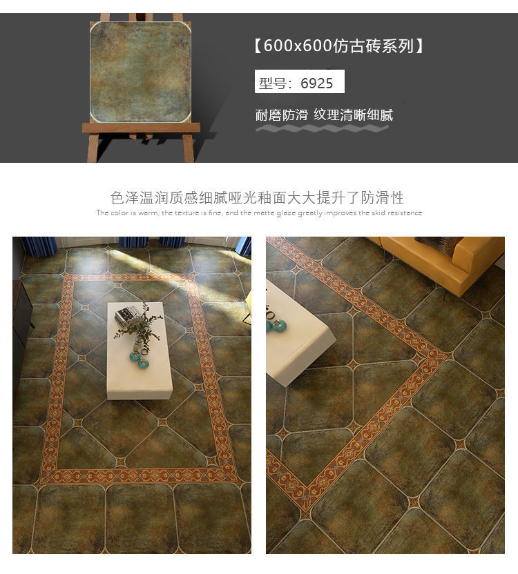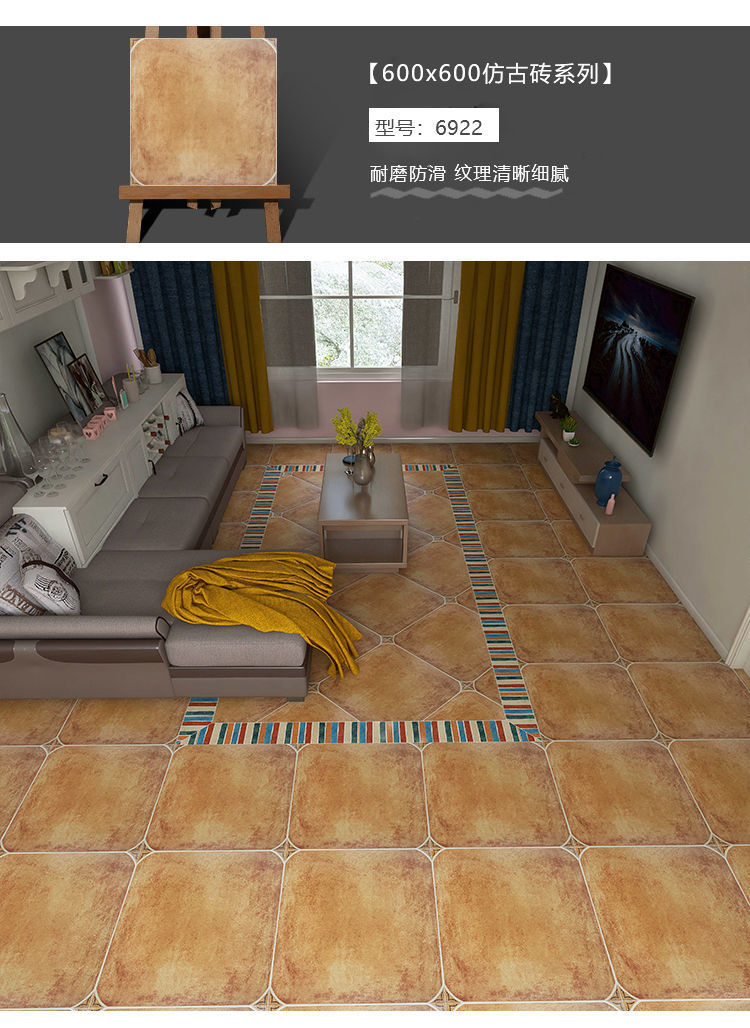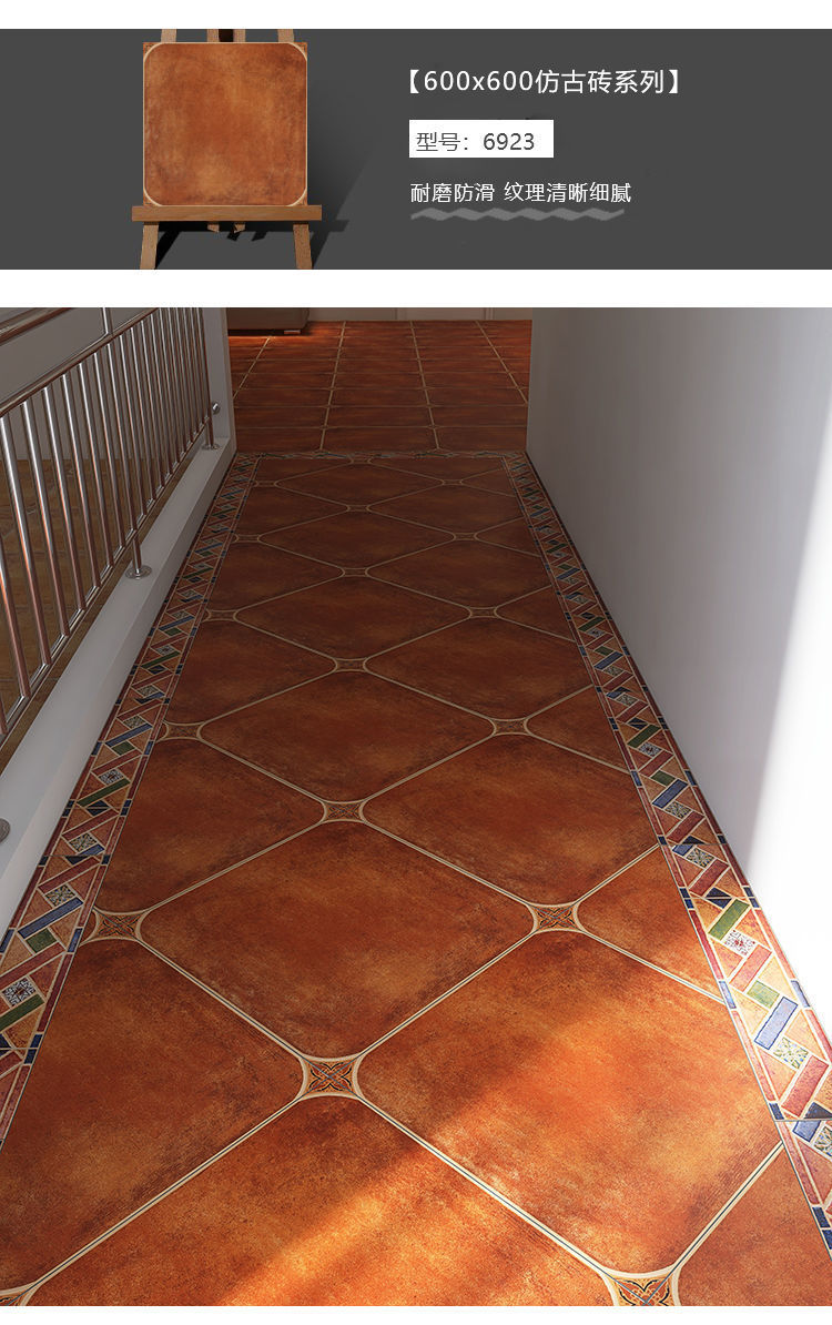 Gạch lát nền chống trượt Gạch cổ mục vụ Mỹ 600 phòng khách phòng ngủ phong cách cổ điển có góc hoa sân thượng gạch lát nền chống trượt