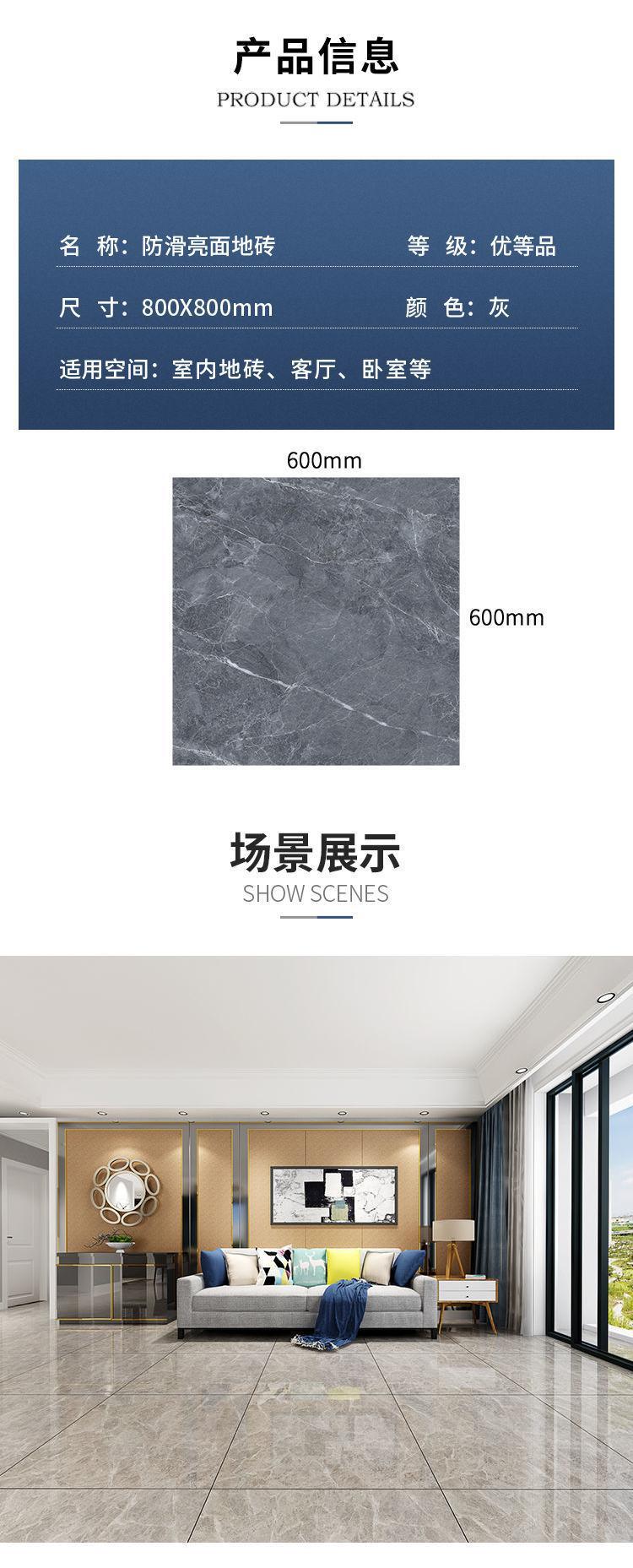 Gạch lát nền Phật Sơn mới 800800 gạch lát nền phòng khách chống trượt màu xám tráng men toàn thân gạch bán buôn 600600
