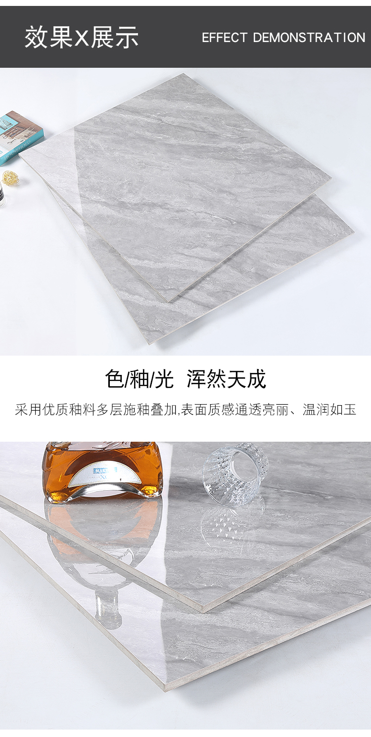 Gạch lát nền phòng khách 800800 gạch lát nền chống trơn trượt phòng khách màu xám đơn giản hiện đại hạt liên tục toàn thân bằng đá cẩm thạch