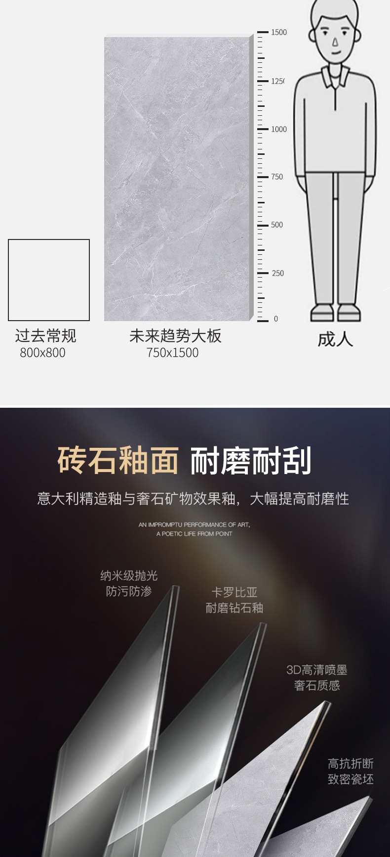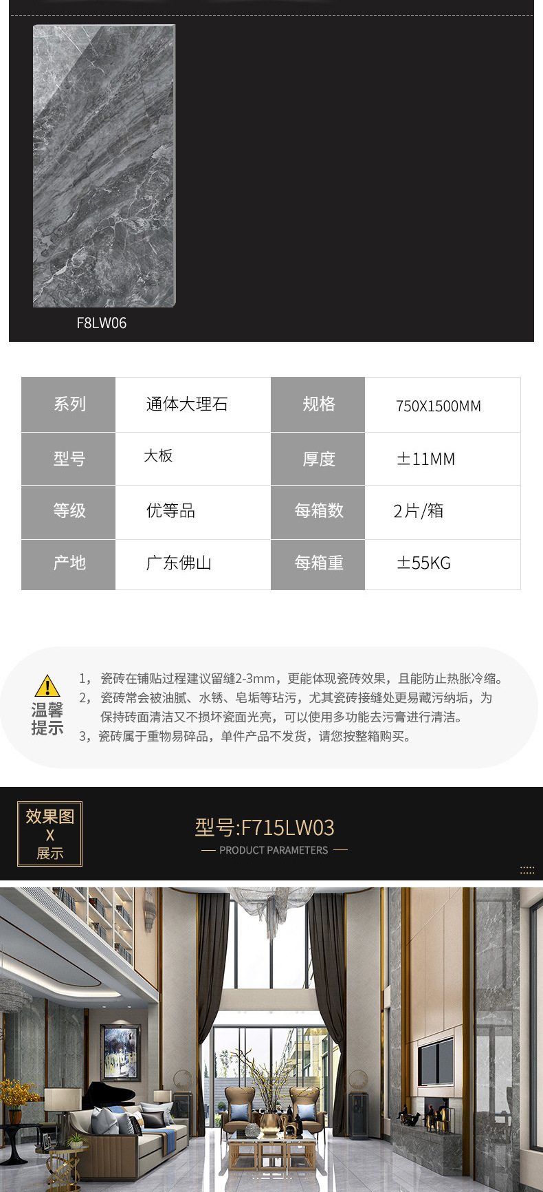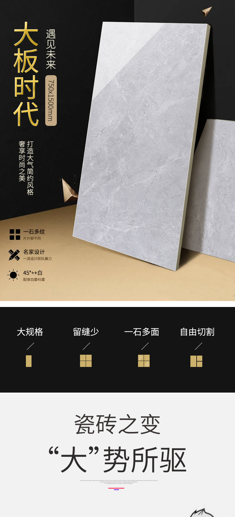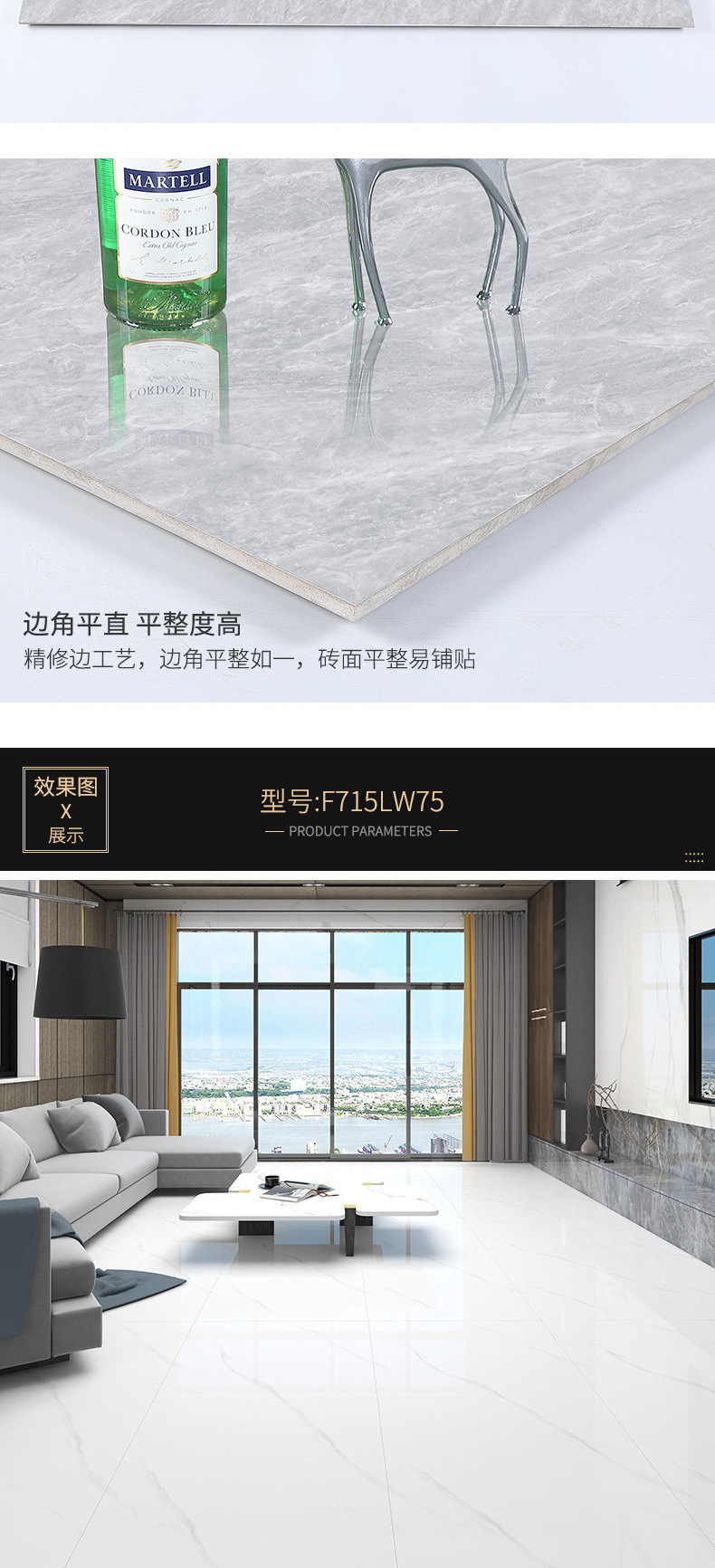 Gạch lát nền phòng khách biệt thự gạch lát nền đá cẩm thạch toàn thân 750×1500 biệt thự hiện đại đơn giản gạch lát nền mới