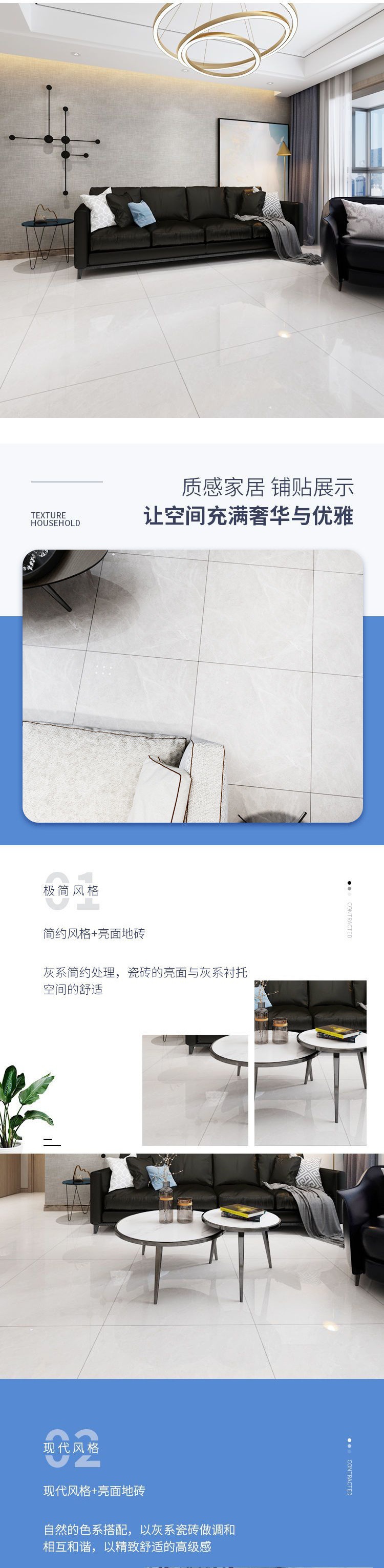Gạch lát nền phòng khách Gạch lát nền Phật Sơn 800×800 Gạch lát nền màu xám đá cẩm thạch toàn thân 60×60 chống trơn chống mài mòn