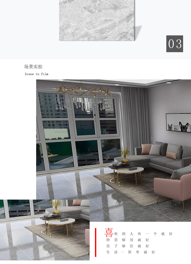 .Gạch lát sàn phòng khách 800800 gạch lát nền toàn thân bằng đá cẩm thạch trong nhà gạch lát sàn chống trượt gạch mới 80*80 màu xám