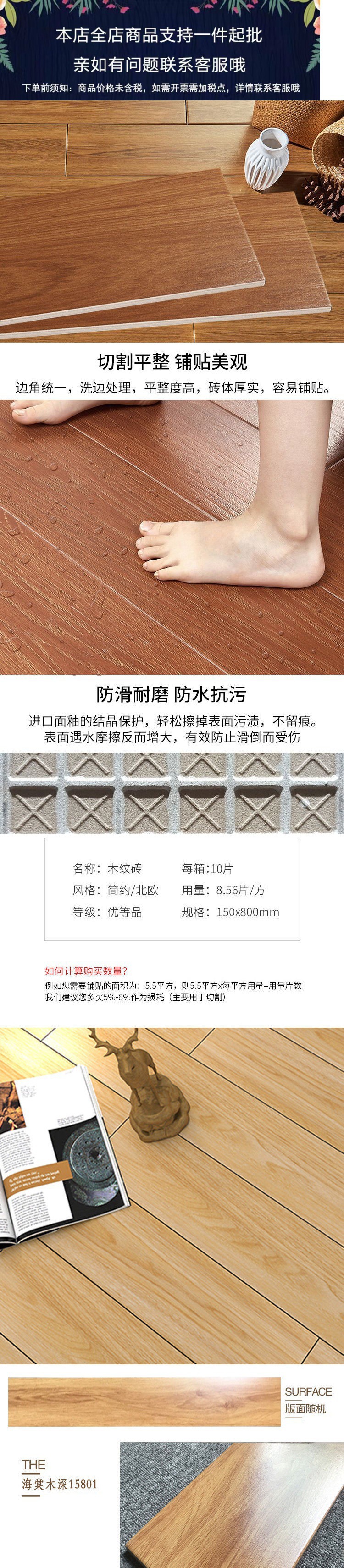 Gạch lát sàn vân gỗ lát sàn 150×800 sứ giả gỗ đặc lát sàn phòng khách Phật Sơn chịu mài mòn gạch chống trượt xuyên biên giới