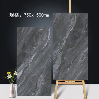Gạch phòng khách tấm lớn 750×1500 lát đá hoa cương toàn thân tường và sàn lát gạch khổ lớn nền tường đơn giản