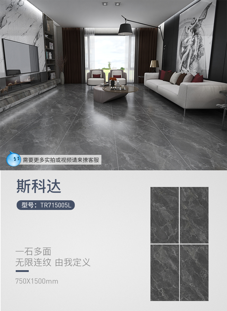Gạch siêu nhẹ xi măng nhẹ 750×1500 gạch lát nền phòng khách màu xám gạch ốp tường nhà bếp phòng tắm đơn giản hiện đại