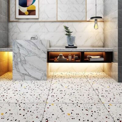 Gạch terrazzo màu xám 600×600 phòng khách gạch lát nền phòng ăn chống trượt 800×800 kỹ thuật màu gạch ốp tường cổ