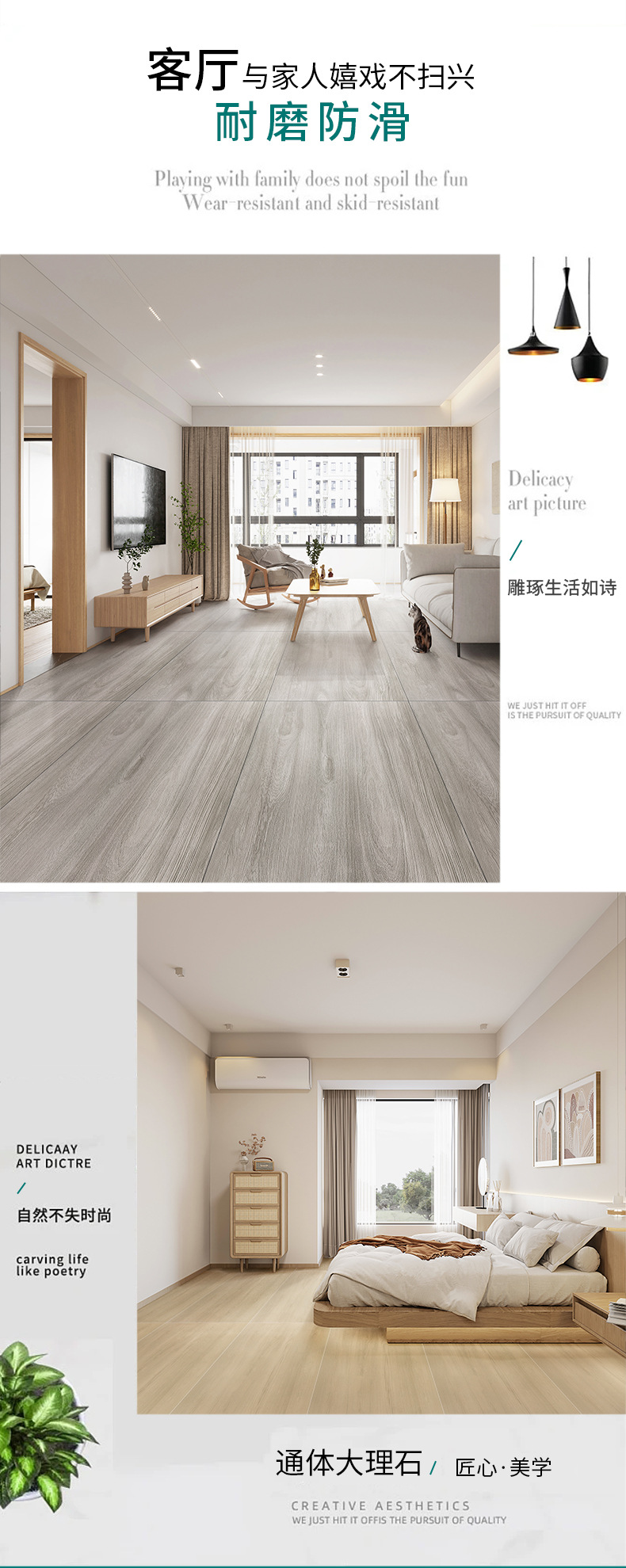 Gạch vân gỗ toàn sứ 750×1500 log màu da tráng men phòng khách phòng ngủ lát sàn giả gỗ đá phiến phong cách kem