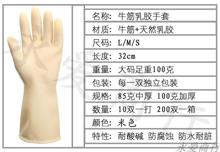 特点:本手套采用优质天然乳胶,特别配方精制而成,本品能在浓度45度以下的硫酸溶液中和浓度为30%以下的氢氧化钠深液中连续操作