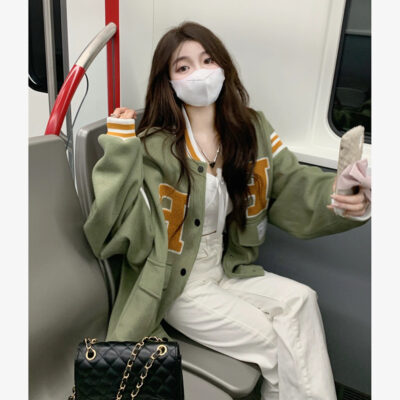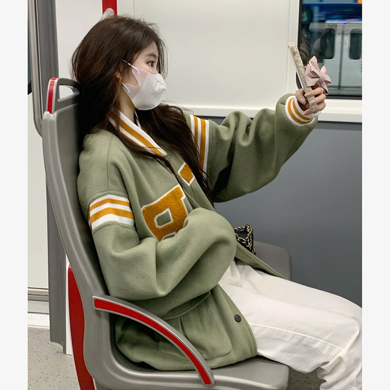 Ganneri ~ Áo khoác áo khoác thiết kế thêu cảm giác phong cách Hồng Kông phiên bản Hàn Quốc mùa thu thích hợp ins áo len dáng rộng đồng phục bóng chày nữ
