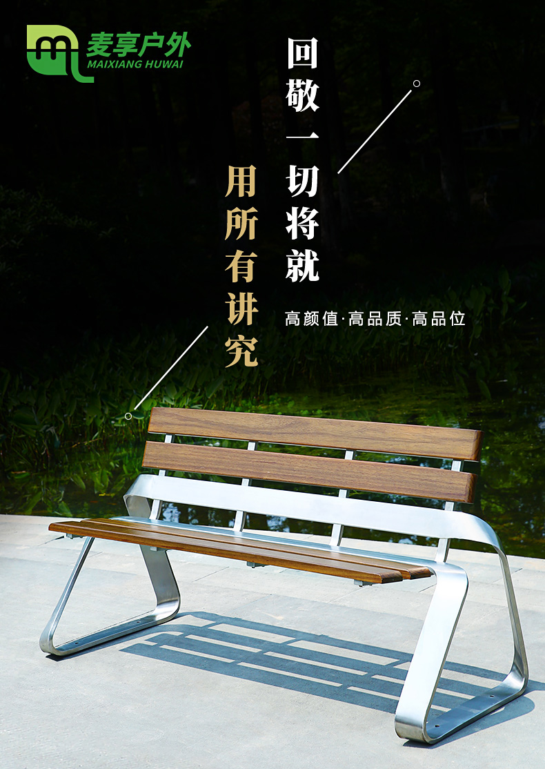 Ghế công viên băng ghế ngoài trời băng ghế dài bằng thép không gỉ chống ăn mòn gỗ rắn giải trí sân vuông sân ngoài trời nghệ thuật