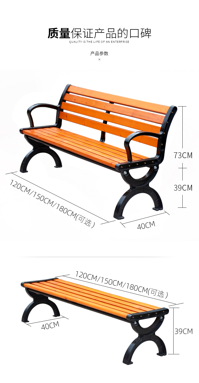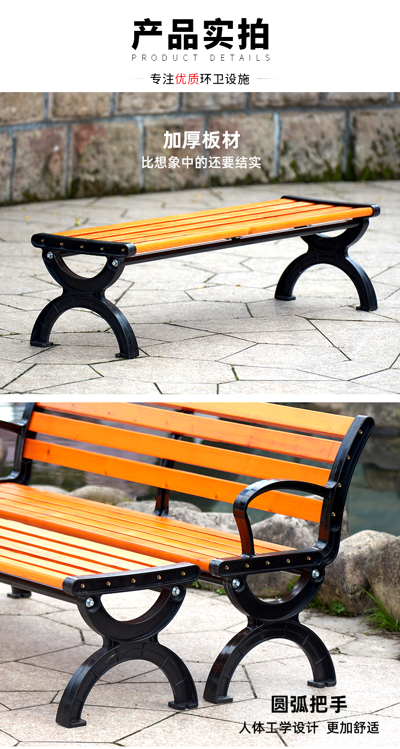 Ghế công viên băng ghế ngoài trời chống ăn mòn gỗ rắn gỗ trở lại sân trong ghế vuông thư giãn ban công ngoài trời ghế sắt rèn