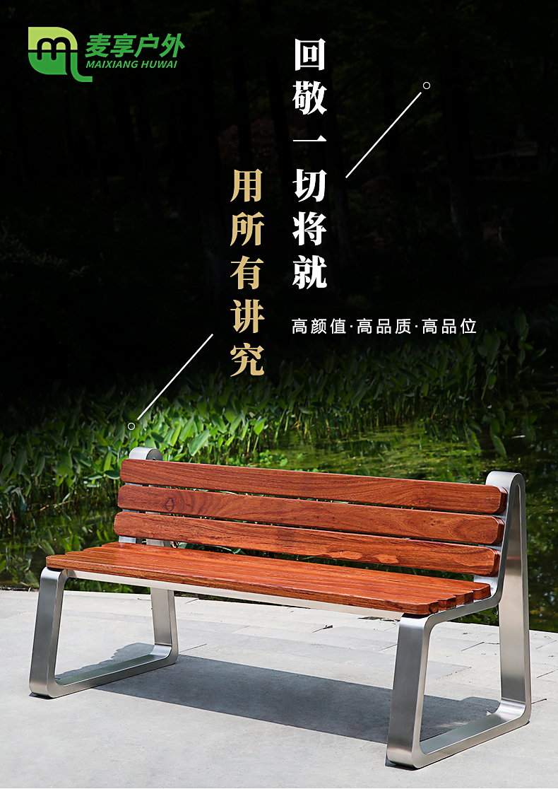 Ghế công viên băng ghế ngoài trời Sân đôi ghế sau bằng thép không gỉ Châu Âu chống ăn mòn bằng gỗ rắn Băng ghế thư giãn ngoài trời