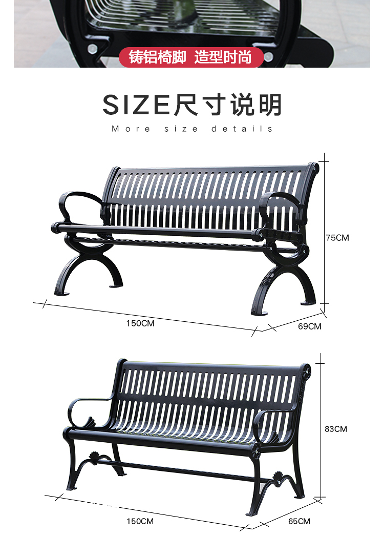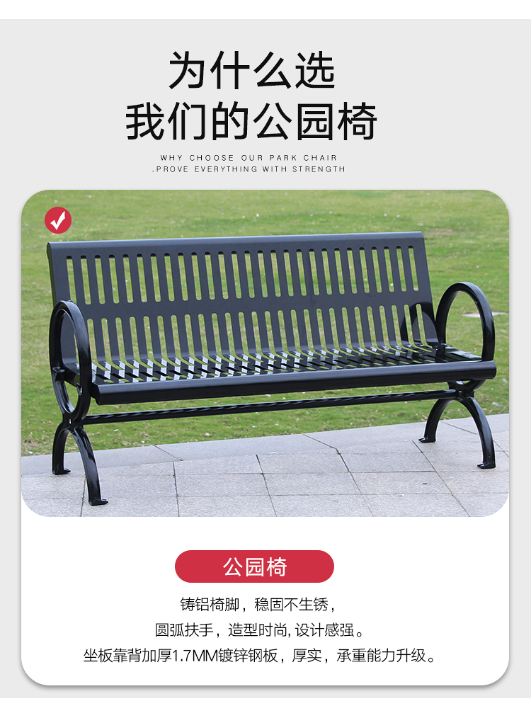 Ghế công viên băng ghế ngoài trời sắt rèn kim loại băng ghế dự bị cộng đồng băng ghế thư giãn giải trí sân vườn cảnh quan tựa lưng băng ghế