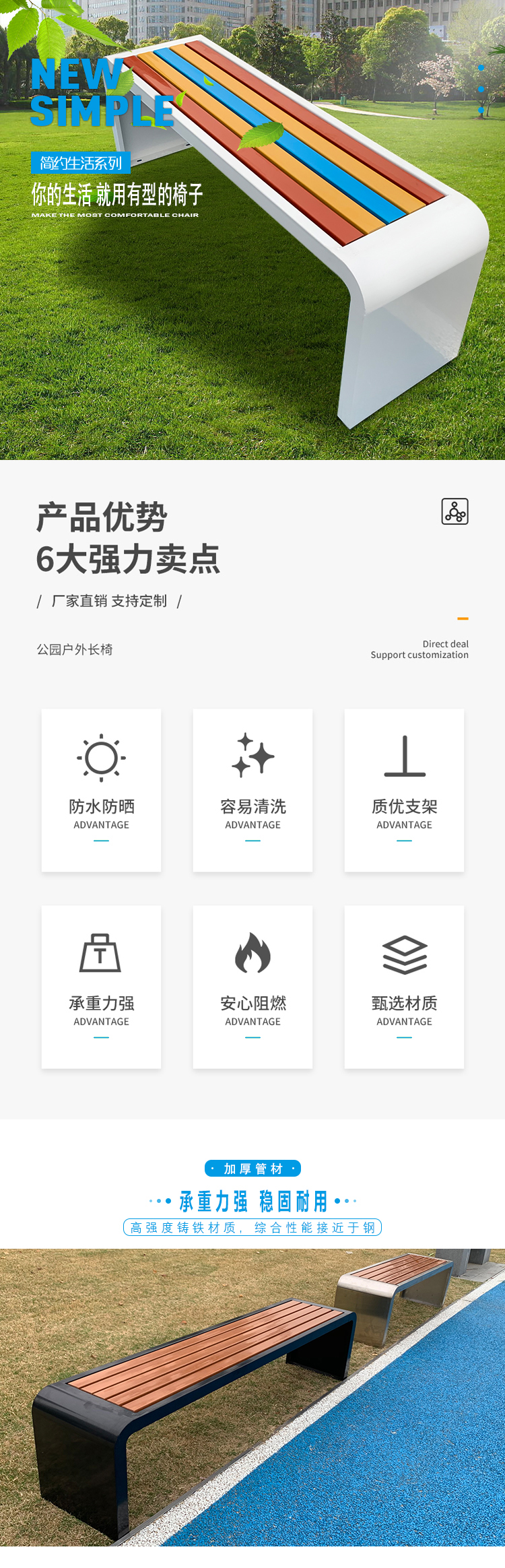 Ghế công viên băng ghế ngoài trời trong sân chống ăn mòn hàng ghế vuông nghỉ ngơi cộng đồng băng ghế thư giãn bằng gỗ rắn